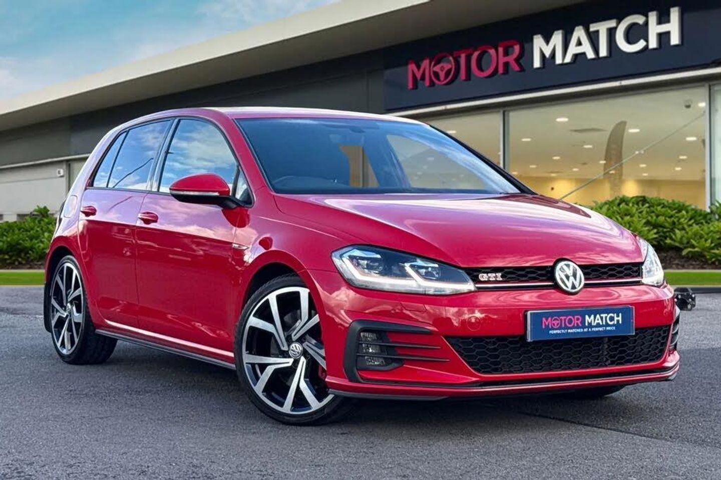 Available now at Motor Match Chester is this 2019 Volkswagen Golf 2.0 TSI GTI Performance which comes in a stunning Tornado Red paintwork! This vehicle boasts a full Volkswagen service history, with the last completed at 41,610 miles and sits on stunning upgraded 19" alloy wheels for a fantastic look. The vehicles LED headlights and front fog lights ensure you're seen at all hours of the day, and the front and rear parking sensors, alongside the rear view camera are perfect for alerting you of any obstructions when maneuvering! The boot provides a great amount of storage space, with the option of folding the rear seats for any larger items and the interior is finished in a part leather upholstery for a stylish feel. You'll find ISOFIX mounting points on both outer rear seats, and the front seats can be heated to provide excellent comfort during the winter months. The multifunctional steering wheel has mounted controls for audio functions, as well as the cruise control and speed limiter, which is perfect for motorway driving. In terms of entertainment, you have the choice of the DAB, AM and FM radio, or you can connect devices via Bluetooth, AUX and USB to listen to your own music. You can use the Bluetooth function to connect your mobile device to make and take phone calls whilst out on the go and the satellite navigation allows you to plan routes and locate nearby points of interest for a smoother journey! You can even stream apps via Apple Carplay/Android Auto! This vehicle is compliant with Clean Air Zone (CAZ) or Ultra Low Emission Zone (ULEZ) regulations, meaning it produces low emissions and helps to improve air quality in our cities. This car comes with our Motor Match Promise including 30 days or 1,000 mile warranty, whichever comes first, along with flexible finance packages available* Terms & conditions apply. RAC Extended warranties and Click & Collect is also available.