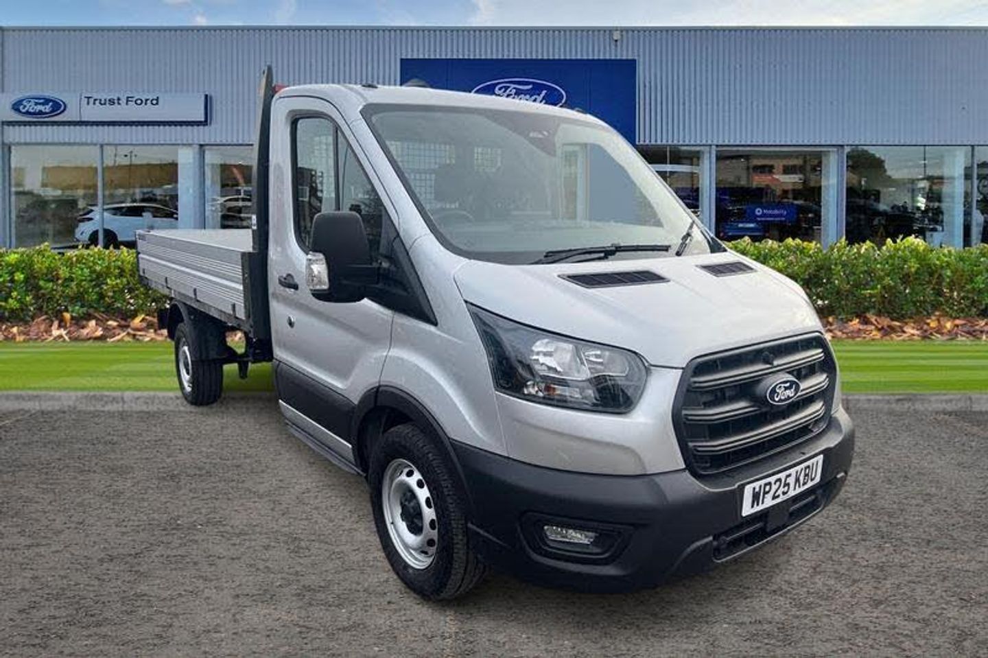 CRUISE CONTROL provides extra comfort on longer journeys allowing you take your foot off the acceleration whilst just focusing on steering the vehicle, REAR VIEW CAMERA shows whats behind you on a screen in front of you on the dashboard - the system activates when you select reverse gear and using virtual guidelines can help you park, HILL START ASSIST temporarily stops you rolling backwards or forwards when making a hill start - maintaining pressure to the braking system for an extra 25 seconds giving you more time and control as you move your foot from the brake to the accelerator, BLUETOOTH HANDS FREE WITH VOICE CONTROL allows you to operate both your mobile phone and Ford audio system - controlling several functions using a set list of simple voice commands, Driver's airbag, Wireless Apple CarPlay and Android Auto, Recirculation heater, Centre console, Warning lights, Key operated bonnet release, Reach and rake adjustable steering column, Audio controls mounted on steering wheel, 2 x 12V power outlets, Part body colour front bumper, Front door map pockets, Hill start assist, Adaptive front lighting system, Gearshift indicator light, Daytime running lights, Rope hooks, Low roof line, Door mirrors - Blind spot eliminator and integrated side indicator, Electronic dynamic cornering control, Emergency brake assist, Roll stability control, Side wind mitigation, Automatic on/off headlights, Tablet holder, Intelligent Speed Assist, Emergency assistance, Visible Vehicle Identification Number (VIN), Overhead console, Vehicle maintenance monitor, Emergency brake warning, Rear fog lamps, Electronic Stability Control (ESC), Tyre pressure monitoring system, Curve control, Rear axle Alt A - Narrow track, Electric power assisted steering (EPAS), Driver one touch up/down power windows, Driver and passenger seatbelt reminder, Non limited slip differential front axle, Brakes - ESP/HLA/FBS, Day/Night inside mirror, Quad beam headlamps, Complete tinted glass, Collision mitigation system, Unperforated cab back panel, Wrong way alert, Start/stop system, Less load compartment loops, Multi stage vehicle, Multi channel door entry remote, Exhaust exit behind muff down, 8 Part digital instrument cluster, Front axle rating - 1850KG, Self colour door handles, Self colour front grille, Halogen projector headlights, Front independent MacPheron struts, linear rate coil springs, stabiliser bar, gas pressured shock absorbers and rear leaf springs, Battery - Cold start function (-20 degree C), Twin, 2 litre bottle capacity, fascia mounted bottle holder, Driver's side storage compartment on facia top, Underseat storage compartment (Under dual passenger seat), 4 Front speakers (2 woofers and 2 tweeters), Roof mounted fin antenna, Header mounted courtesy lights front with theatre dimming, 2-way head restraints on front seats, Automatic front wipers with rain sensor, 4-Spoke Polyurethane steering wheel, Sngle fuel tank - 70 Litres, Ford Easy Fuel capless refuelling system with misfuel inhibit, AdBlue aftertreatment system - 24 Litre, Anti-lock braking system (ABS) with electronic brake-force distribuition (EBD), Load adaptive control, Front passenger's airbag including airbag deactivation switch, Front side and curtain airbags, 3-point diagonal inertia reel seatbelts for all front seats, Driver seatbelt pre-tensioner, Immobiliser - Safeguard passive anti-theft system (PATS), Audio mis-lock feedback, audible signal if a door is ajar when locking activated, Auto locking on drive away, doors automatically lock at 5 mph, Remote control central locking with 1 key fob, Power central locking, Dual circuit front and rear discs with self adjusting servo assistance, Cab easy clean rubber floor covering, Cab moulded headlining, Water in fuel filter sensor, Selectable drive modes - Normal, Slippery and Eco, Wide self colour bodyside mouldings, High strength lightweight steel subframe, Smooth side boards for ease of signwriting, Powder coated white aluminium sideboa