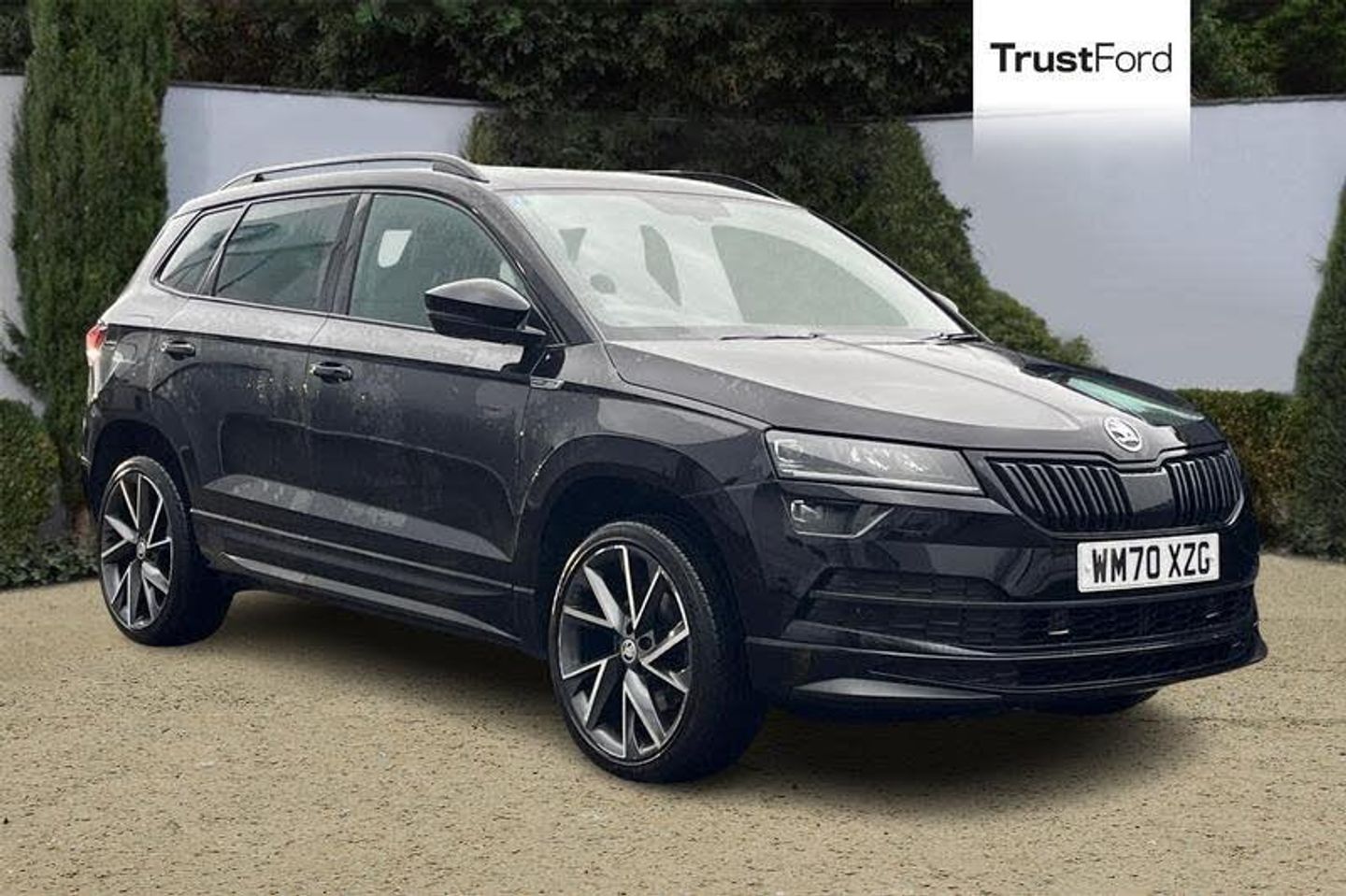 Care connect, Drive mode selector, Driver fatigue sensor, Multifunction colour trip computer, Outside temperature gauge, Service interval indicator, SmartLink wireless for Apple and wired for Android, Start/stop system with regenerative braking, USB C Port x 2 in front centre console, Acoustic glass, Aero front windscreen wipers with intermittent function, Automatic headlight control system, Black door mirrors, Black electric window control buttons, Black radiator grille, Black roof rails, Body colour door handles, Body coloured bumpers, Electric front and rear windows with child proof lock, Front door steps with SportLine logo, Full LED headlights + adaptive front light system + LED daytime running lights and front cornering fog lights, Headlight washers, Heated rear windscreen, LED rear lights with high functionality, Light assistant (coming/leaving home/tunnel light), Panoramic sliding sunroof, Privacy glass, Protective door side sills in body colour, Rear diffuser, Safety reflectors on front doors, Skoda lettering on tailgate in black, Sportline badge on front fender, Sportline decorative inserts with badging, Sports front and rear bumpers, Third brake light, 1.5 litre bottle holders in driver and front passenger door panels, 12V socket in boot, 12v socket in front centre armrest with storage compartment and rear air vents, 2 Folding hooks and nets in boot, 2 Front readings lights for driver and passenger, 3 rear height adjustable headrests, 4 foldable roof handles with rear coat hooks, Aluminium pedals, Black roof headlining, Cargo elements in boot, Chrome inner door handles, Door sill scuff plates, Driver and passenger seats height adjust, Front head restraints, Height adjustable front three point seats belts with tensioners, Height/reach adjust steering wheel, Ice scraper, Illuminated and cooled glovebox, Illuminated luggage compartment, Isofix child seat preparation outer rear, Manual lumbar support for front seats, Net programme in boot, Pen holder, Pollen filter, Rear reading lights, Rear seats fixed folding and divided 60:40, Retractable parcel shelf attachable to tailgate, Safety vest holder, Solid rear boot cover, Storage box in upper central dashboard closed, Storage compartment below the passenger seat, Sunvisors with illuminated vanity mirrors, Textile floor mats, Umbrella under passenger seat, Welcome animation with sportline logo, Airbags - Front side, head, knee and curtain, Automatic door unlocking in case of crash, Automatic fuel cut off in case of crash, Driver airbag, Electronic parking brake with auto hold function, Emergency rear braking signal, ESC including ABS, MSR, ASR, EDS, HBA, DSR, RBS, MKB and traction control, Front assist radar scanning of the space in front of the car with automatic braking, Hill hold control, Passenger airbag with switch-off function, Pedestrian monitor, Seatbelt reminder signalisation and pretensioner for all seats, Three point seatbelts rear, Two tone horn, Tyre pressure display, Tyre pressure monitor