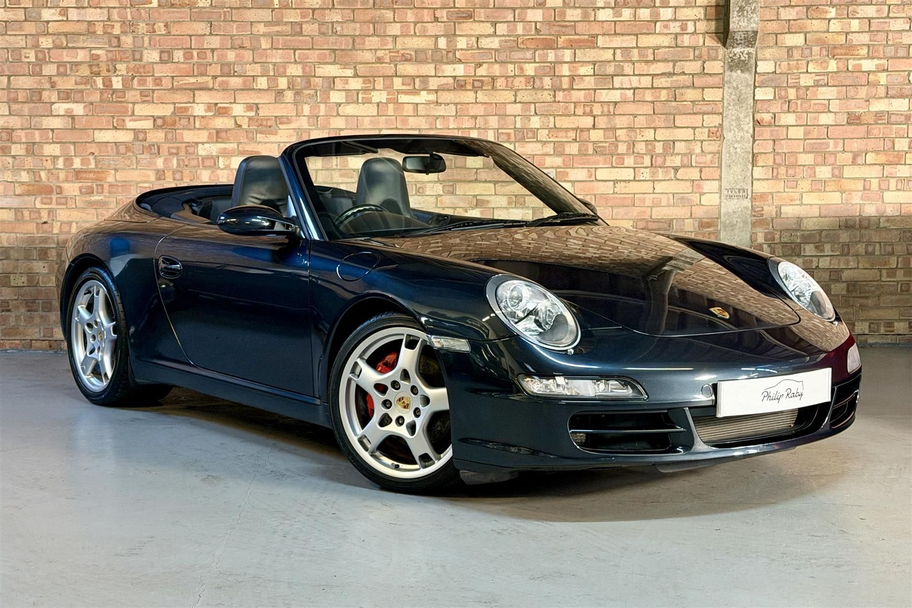 This 2006 Porsche 997 Carrera S Cabriolet Tiptronic is finished in rare Atlas Grey Metallic, a deep classy shade, with 19-inch lobster claw wheels.