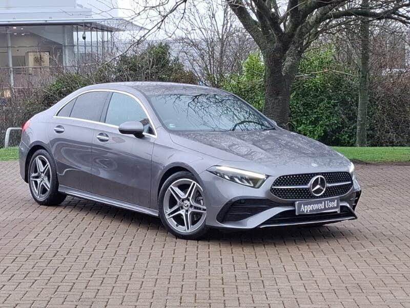 Manufacturer Approved Used, 12 Months' Mercedes-Benz Approved Used Car warranty when purchased from this branch, Balance of warranty, 10.25 inch touchscreen central media display, Artico man-made leather upholstery, AMG body styling - AMG front apron with front splitter and AMG rear apron and visible exhaust tailpipe trim elements, Heated front seats, Exhaust system with 2 visible tailpipe trim elements and rear apron, Interior lighting - 64 colour Ambient lighting, 3 Spoke flat bottom leather multi function steering wheel with perforated leather in grip area, Cruise control + speed limiter, DYNAMIC SELECT with a choice of driving modes (ECO, Comfort, Sport and Individual), Hey Mercedes Voice activation, Parking pack - A Class, Smartphone integration with Apple CarPlay and Android auto, Light and sight pack - A Class, Wireless charging, Mercedes Benz sound system (100 W) with 6 speakers, MBUX multimedia system, Guard 360 degree vehicle protection, Attention assist, Light longitudinal grain aluminium trim, Mercedes me connect including emergency call system, accident recovery, breakdown and maintenance management, Lowered comfort suspension, Diamond radiator grille with pins in fine star pattern, LED High Performance headlamps including integral LED daytime running lamps and adaptive highbeam assist, Brushed stainless steel sports pedals with rubber studs, Galvanished gear shift paddles on steering wheel, Keyless go comfort pack - A Class, Seat comfort pack - A Class, 18" AMG 5 twin spoke light alloy wheels,aerodynamically optimised, painted in termolite grey with high sheen finish