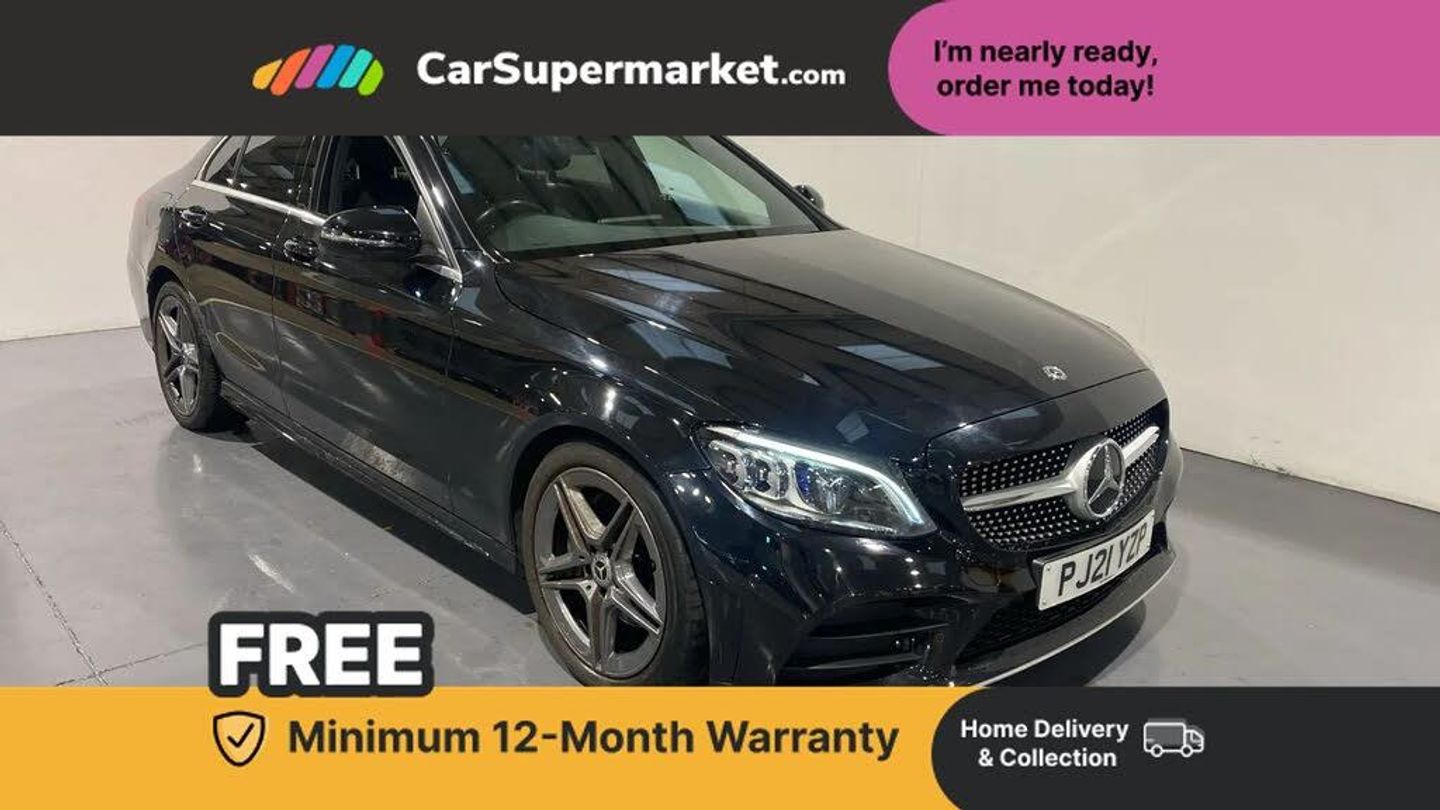 12.3" digital instrument cluster display,Active park assist with parktronic system,Analogue clock,Attention assist,Collision prevention assist plus,Colour display - 10.25" colour display screen,Cruise control with speedtronic variable speed limiter,DYNAMIC SELECT with a choice of driving modes (ECO, Comfort, Sport, Sport+ and Individual),Mercedes connect me,Multi function trip computer,Outside temperature gauge,Remote boot release,Reversing camera,SD card based satellite navigation system,Service indicator (ASSYST),Sports direct steer speed sensitive steering,Status display for rear seat belts in instrument cluster,66 litre fuel tank,9G TRONIC 9 speed automatic transmission,Agility control sports suspension lowered by 15 mm,Diesel particulate filter,2 USB ports and one SD card slot centre console,Audio 20 with integrated media interface and bluetooth handsfree function,DAB Digital radio,Frontbass loudspeakers,Steering wheel mounted audio controls,Adaptive brake lights,AMG body styling front apron, rear apron and side skirts,Automatically dimming rear view mirror and driver's exterior mirror,Body coloured bumpers,Body coloured door mirrors,Chrome pins diamond radiator grille with integrated stars,Electric windows with one touch opening/closing and obstruction sensors,Electrically adjustable and heated door mirrors,Green tinted glass,Heated windscreen washers,LED Indicators,LED tail lights,LED third brake light,Multi beam LED headlights,Privacy glass (rear side windows and rear screen),Radio aerial integrated into rear window,Rain sensor windscreen wipers,Side windows surround in polished aluminium,Twin tailpipe design integrated into rear bumper,2 cupholders in front centre console,3 spoke flat bottom AMG steering wheel in nappa leather with chrome inserts perforated leather grip,40:20:40 split folding rear seats,AMG sports seats,Auto Mercedes-Benz child seat recognition sensor,Dual zone automatic climate control,Front and rear head restraints,Front centre armrest with storage compartment,Front door sills with Mercedes Benz lettering,Gearshift paddles on steering wheel,Heated front seats,Height/reach adjustable steering column,Illuminated glovebox,Leather upholstery,Multifunction steering wheel,Rear top tether child seat ISOFIX attachment,Sports pedals with stainless steel surfaces and rubber studs,Sunvisors with illuminated vanity mirrors,Lighting pack - C class,Mirror pack - C Class,Seat comfort pack - C Class,Stowage space pack - C Class,3 rear 3 point seatbelts,Active bonnet,Adaptive brake system with HOLD function and brake drying in the wet,Anti-lock braking system (ABS),Black seat belts,Brake calipers with Mercedes-Benz lettering + perforated front brake discs,Child proof door locks,Drivers knee airbag,Drivers pelvis airbag,Dual stage driver/passenger airbags,Electronic parking brake,ESP with ASR,Front passenger seat occupancy sensor,Front side airbags,Hill start assist,Rear seatbelt warning indicator,Sports braking system,Tyre pressure monitoring system,Warning triangle and first aid kit,Window airbags,Alarm system/interior protection/immobiliser,Central locking with interior switch, automatic locking and crash sensor with emergency opening function,Chrome surround in electric key,Urban guard,Grey oak open pore trim,18" AMG 5 twin spoke aero alloy wheels in tremolite grey,TIREFIT with tyre inflation compressor