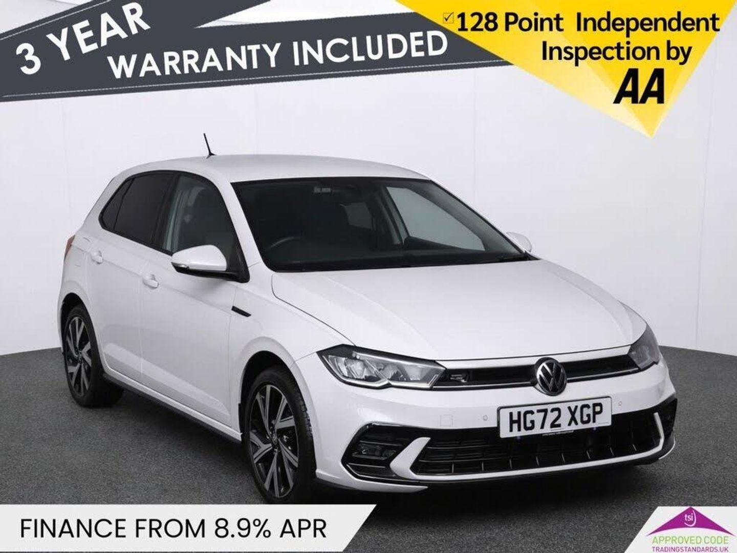 This 2023 Volkswagen Polo TSI R-Line presents an exceptional ownership proposition with its remarkably low mileage of just 13779 miles. As a single owner vehicle, this Euro 6 compliant Polo boasts a 1.0 litre petrol engine and the sporty R-Line trim. It comes equipped with Automatic Headlight Control featuring LED separate daytime running lights and a convenient Coming Home Leaving Home function. The Ready 2 Discover infotainment system includes Bluetooth connectivity, while the Air Care Climatronic air conditioning system offers dual zone temperature control with an active combination filter. Further enhancing the driving experience are the Light and Sight Pack and High Beam Assist, both contributing to automatic headlight operation. This Volkswagen Polo stands out with its impressive fuel economy, achieving a highlight of 52 miles per gallon, making it an economical choice for your journeys. Its low insurance group rating also indicates lower running costs compared to similar vehicles. Practicality is a key strength, with generous boot space designed to accommodate your needs. These combined highlights demonstrate how this particular Polo offers a superior ownership experience, blending efficiency, affordability, and ample storage with its desirable R-Line specification. Oakwood Motor Company are an established family run dealership, home of the best used cars in Bury! We have hundreds of cars currently in stock from all your favourite brands including our specialist selection of Audi VW Group vehicles. Our fantastic rates are available on both HP and PCP finance, and we have extended warranties available for up to 3 years for complete peace of mind. Our experienced sales team are on hand to help you every step of the way, so give us a call today to reserve your new car with a refundable £100 deposit. Visit our used car dealership in Bury! We take all reasonable steps to ensure the accuracy of the information supplied in our advertising materials, however on occasion errors may occur. Images used are for illustrative purposes only. Please ensure you take the time to fully inspect your vehicle for specification/features which are important to you, and raise any queries with your Sales Executive.