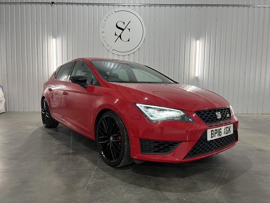Features: 12 Volt Power Supply in Centre Console,19in Alloy Wheels - CUPRA 290 Multi-Spoke,3.5in Drivers Display,ABS - Anti-Lock Braking System and TCS Traction Control System with De-activation,Active Front Head Restraints,Additional Heating-Ventilation Outlet in Rear Centre Console,Alarm - Perimeter and Interior Monitoring with Back-up Horn and Tow-Away Protection,Aluminium Door Sill Trim with Cupra Logo,Ambient Spot Lighting and Footwell Illumination,Anti-Theft Roof Antenna,Auto-Dimming Rear View Mirror,Auto-Headlights,Automatic Warning Lights,Black CUPRA Tailgate Lettering,Black Exterior Mouldings and Frames,Black Interior Dashboard Detailing,Black Interior Decorative Mouldings,Bluetooth Phone Connection,Body-Coloured Door Handles,Brake Callipers - Red with Cupra Logo,Bumpers - Exclusive Cupra Front and Rear,Cargo Rings in the Boot,Child Locks on Rear Doors,Convenience Pack Plus,Cruise Control,Cupholders - Front Centre Console x2,CUPRA Black-Line Pack,Dark Tinted Rear Windows,DCC - Dynamic Chassis Control,Driver and Front Passenger Airbags,Driver and Passenger Sunvisor with Covered and Illuminated Mirrors,Drivers Knee Airbag,Dual Zone Climate Control,Dust and Pollen Filter,Electric Windows - Front with One-Touch and Anti-Squeeze,Electric Windows - Rear with One Touch and Anti-Squeeze,Electrically Folding Door Mirrors,Electromechanical Progressive and Speed-Sensitive Power Steering,Electronic Engine Immobiliser,ESC - Electronic Stability Control with EBA - Emergency Brake Assist,ESC Switch-Off Key,Exhaust Pipe - Dual,Front Armrest - Height and Reach Adjustable with Storage Compartment,Front Assist,Front Courtesy Light with Front and Rear Reading Lights,Front Grille Frame - Gloss Black,Front Passenger Airbag De-Activation,Front Side Airbags,Fuel Filler Flap linked to Central Locking,Full LED Headlights,Full Link,Gearshift Indicator,Gloss Black Door Mirrors with Integrated LED Indicators,Gloss Black Pillars,Head Restraints - Height Adjustable Front,Head Restraints - Height Adjustable Rear x3,Headlights - Automatic Range Adjustment,Height Adjustable Passenger Seat,Height and Reach Adjustable Steering Wheel,Height-Adjustable Drivers Seat,Hill Hold Control,Illuminated Boot,Instrument Lighting with Brightness Control,Interior Ambient Lighting - Door Panel,ISOFIX Points in Outer Rear Seats with Top Tether Anchorage Points,Leather Gear Knob,Leather Handbrake,LED Interior Illumination Pack,LED Taillights,Lights Left On Warning Buzzer,Locking Wheel Bolts,Low Fuel Warning Light,Mechanical Limited Slip Differential,Media System Plus,Multi-Collision Braking System,Navigation System,Outside Temperature Gauge,Parking Sensors - Front and Rear with Optical Parking System,Passenger Door Mirror with Kerb Function when Reversing,Rain Sensing Wipers,Rear Courtesy Light with Rear Reading Lights,Rear Fog Light,Rear Roof Spoiler with Black Underside,Rear Wash - Wipe,Remote Central Locking with Deadlocks,Remote Door Mirror Folding Function,RPM Counter,Seat CUPRA Drive Profile with Four Different Modes - Normal-Sport-Cupra-Individual,SEAT Logo Tailgate Release,Seatbelt Reminder - Front,Space-Saving Spare Wheel,Speakers x8,Split Folding Rear Seats - 60-40,Sports Interface,Steering Wheel - Alcantara with Copper Stitching - CUPRA Logo and Alcantara Gear Knob,Technology Pack,Three-Point Seat Belts,Tinted Windows,Trip Computer,Two Curtain Airbags,Two Remote Keys with Window Open-Close - Door Mirror Folding and Boot Opening Functionality,Tyre Pressure Monitoring System,Visible VIN in Windscreen