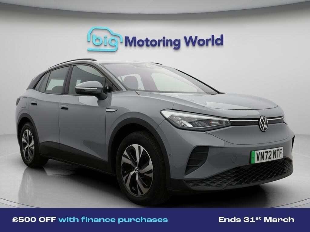 £500 towards your finance depo-Our Volkswagen ID.4 is finished in Grey. Specification includes a range of fantastic features including £500 towards your finance deposit, Comfort Pack, Part Leather Seats, Apple CarPlay, Adaptive Cruise Control, Android Auto, Satellite Navigation, Heated Seats, Rear View Camera, Heated Steering Wheel Specification information is supplied by CAPHPI and may vary to the actual car. This data does not form any part of a buying contact. Please check specification prior to purchase in-store. The MOT is valid until December 2026, visit bigmotoringworld.co.uk for more photos, a 360 tour, service history and a free HPI report.Were BIG on peace of mind and this Grey Volkswagen ID.4 has completed our comprehensive 200 point inspection and passed all checks. Its ready for you to drive away with immediate collection in-store. We include a 90-day warranty as standard plus an option to extend for up to 3 years.Reserve this car exclusively for you, safely and securely at bigmotoringworld.co.uk, with a fully refundable £99 deposit. Test drive before you buy, with no commitment, no hassle and a completely haggle free experience. Still searching and want to see thousands more cars? We are BIG on choice with over 8000 cars to choose from.Visit our award winning web site bigmotoringworld.co.uk.Were Big Motoring World and were BIG on what matters to you.