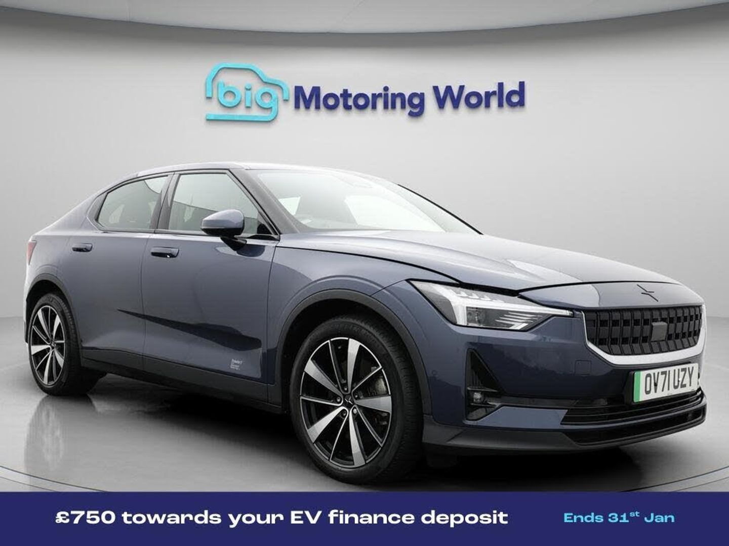 £750 towards your finance depo-Our Polestar Polestar 2 is finished in Blue. Specification includes a range of fantastic features including £750 towards your finance deposit, Dynamic Chassis Control, Panoramic Roof, Harman Kardon Speakers, Premium Sound System, Heated Seats, Rear View Camera, Heated Rear Seats, Heated Steering Wheel, Internet Specification information is supplied by CAPHPI and may vary to the actual car. This data does not form any part of a buying contact. Please check specification prior to purchase in-store. The MOT is valid until November 2026, visit bigmotoringworld.co.uk for more photos, a 360 tour, service history and a free HPI report.Were BIG on peace of mind and this Blue Polestar Polestar 2 has completed our comprehensive 200 point inspection and passed all checks. Its ready for you to drive away with immediate collection in-store. We include a 90-day warranty as standard plus an option to extend for up to 3 years.Reserve this car exclusively for you, safely and securely at bigmotoringworld.co.uk, with a fully refundable £99 deposit. Test drive before you buy, with no commitment, no hassle and a completely haggle free experience. Still searching and want to see thousands more cars? We are BIG on choice with over 8000 cars to choose from.Visit our award winning web site bigmotoringworld.co.uk.Were Big Motoring World and were BIG on what matters to you.