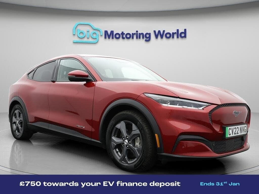 £750 towards your finance depo-Our Ford Mustang Mach-E comes with optional extras worth £1,150. Specification includes a range of fantastic features including £750 towards your finance deposit, 18'' alloy wheels, Leather Seats, Apple CarPlay, Adaptive Cruise Control, Satellite Navigation, Ford SYNC, Privacy Glass, Heated Seats, Rear View Camera Specification information is supplied by CAPHPI and may vary to the actual car. This data does not form any part of a buying contact. Please check specification prior to purchase in-store. The MOT is valid until January 2027, visit bigmotoringworld.co.uk for more photos, a 360 tour, service history and a free HPI report.Were BIG on peace of mind and this Red Ford Mustang Mach-E has completed our comprehensive 200 point inspection and passed all checks. Its ready for you to drive away with immediate collection in-store. We include a 90-day warranty as standard plus an option to extend for up to 3 years.Reserve this car exclusively for you, safely and securely at bigmotoringworld.co.uk, with a fully refundable £99 deposit. Test drive before you buy, with no commitment, no hassle and a completely haggle free experience. Still searching and want to see thousands more cars? We are BIG on choice with over 8000 cars to choose from.Visit our award winning web site bigmotoringworld.co.uk.Were Big Motoring World and were BIG on what matters to you.