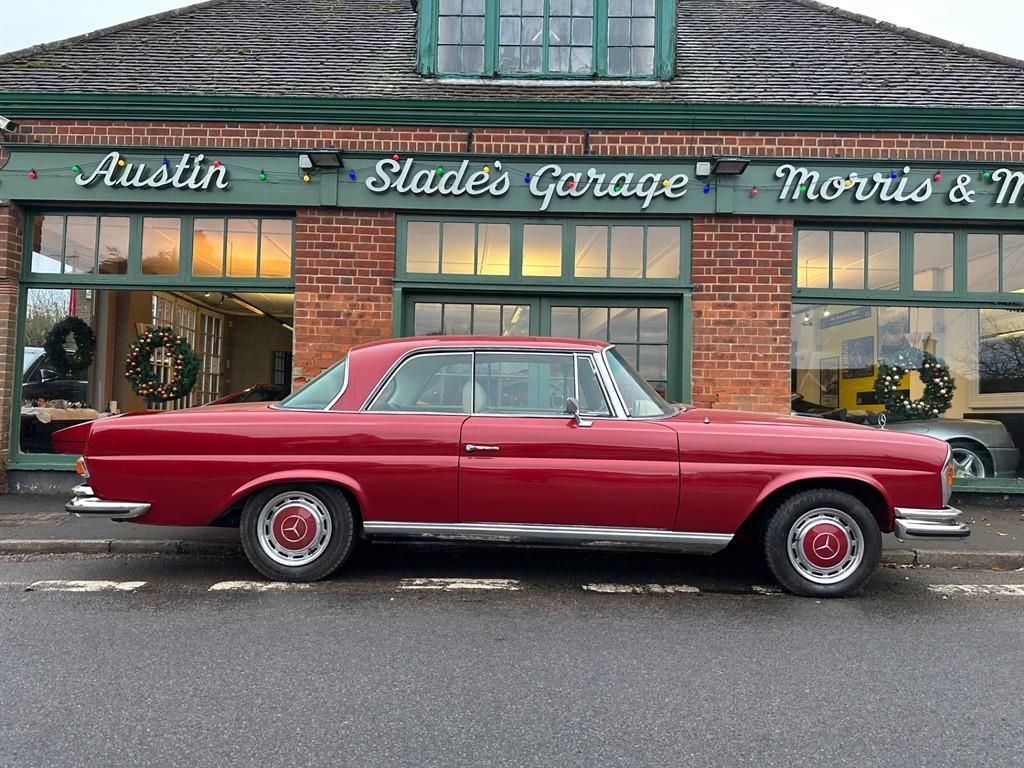 Finished in Mercedes Red Metallic with contrasting Ivory hide and walnut veneer trim. First registered in October 1971 - several months after production ceased, making this an exceedingly late-production example of the already rare and desirable 3.5-litre 280 SE. Unfortunately not a great deal is known about its history prior to coming into the care of the previous keeper who had the car for just shy of 20 years. The current owner purchased the car in 2023 and has since then moved abroad hence the car coming back to the market. In the previous owners time with the car it was regularly maintained, and in more recent times had been subject to a full restoration costing circa �100,000, and as such the car now presents very well indeed throughout, but retains some of its wonderful period charm and patina in some areas, but is mechanically thought to be absolutely sound, meaning this pillar-less coup� is ready for summer evening cruises and long-distance road trips. The paintwork and body is also in great condition overall, having been stripped and re-sprayed during the restoration work and it remains in very good order, with some slight micro-blistering noted on the offside rear wing below the rear side window, and a crack/deformation in the lower NSR wing. There are also the usual light chips visible to the edges of the doors, though these are largely hidden in day-to-day use. Arguably one of the prettiest hard-top cars to ever wear the silver star badge, the W111 �Fin tail� or �Heckflosse� family of coup�s and sedans were introduced in 1959 and lasted until 1971. Ranging from a lowly 2.2-litre inline-six up to a 3.5-litre V8 engine in the top-of-the-line models, the W111 was able to fill the requirements for virtually all of Mercedes� clientele. Interestingly, despite the W111 being designed by Fredrich Geiger, the coup� and cabriolet models were designed by Paul Bracq, and featured a far more subtle rear-end design with less prominent fins. With production of the coup� beginning in late 1960, the final run-out model of the coupe was released in 1969, dubbed (somewhat confusingly) the 280 SE 3.5 which is what we have here. Fitted with the brand-new M116 3.5-litre V8 engine with 200hp and a top speed of 127/130mph (depending on transmission) it revolutionised the W111 from a performance perspective. The 280 SE 3.5 can also be immediately recognised by the redesigned front grille, bumpers and rear lenses, but was otherwise markedly similar to its preceding models. Final production of the 280 SE 3.5 ended in July 1971, with a total of just 4,502 built, making it the rarest variant of the W111.
