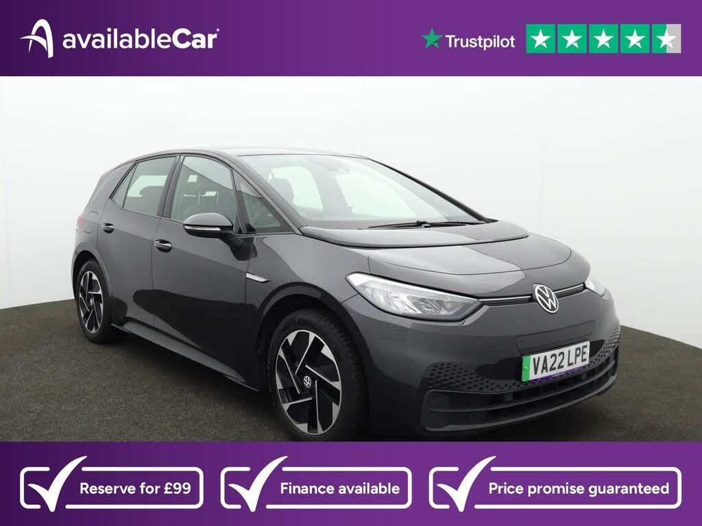 1-Zone Climatronic,10in Infotainment System,18in Steel Wheels - Aero,ABS - Anti-Lock Braking System,Adaptive Cruise Control ACC including Front Assist - Radar Sensor Controlled Distance - Monitoring System - City Emergency Braking System - Cruise Control and Speed Limiter,Airbag - Front Centre,Airbags - Curtain Front,Airbags - Driver,Airbags - Front Side,Airbags - Passenger,All-LED Headlights with Reflector Technology,Armrest Integrated into Front Seats,Black Roof,Body Coloured Bumpers - Door Handles and Door Mirrors with Integrated Indicators,Car2X Technology,Comfort Package,DAB Digital Radio,Digital Dashboard,Driver Alert System,Electric Windows - Front and Rear,Electronic Parking Brake with Auto Hold Function,Exterior E-Sound,Free WeConnect Start for First 3 Years,Heated Rear Window,ID Light,Infotainment Package,Interior Alarm,Interior Ambient Lighting - 10 Colours,Lane Assist,Mode 3 - 32-AMP - 7.2kW Charging Cable for Charging at Public Charge Points,NCAP Pack - Forward Collision Warning - Extended and Proactive Pedestrian Protection,Natural Voice Control,Parking Sensors - Front and Rear,Power Assisted Steering - Speed Sensitive,Remote Tailgate Unlocking,Security and Service - SOS Buttons,Special WeCharge Conditions for ID 3 Customers within First 3 Years,Tool Kit with Tyre Mobility Kit,We Connect ID App,Wireless App Connect