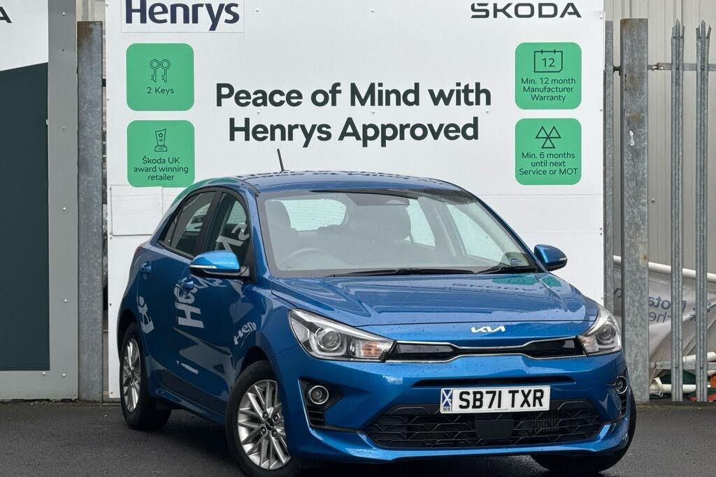 Metallic paint, Metallic - Azure blue, Aeroblade-type front wipers, Front electric windows with driver's auto up/down function, Heated rear window, Rear electric windows, Rear wash/wipe, Speed variable front wipers, Tinted glass, Black grille with chrome surround, Body colour bumpers, Body colour door handles, Automatic lighting control, Bi-function projection headlights, Cornering light, Headlamp levelling, LED daytime running lights, LED indicators in door mirrors, Projection front fog lights, Projection headlights, Rear fog lamp, Welcome home function, ABS with Electronic Brakeforce Distribution (EBD) and Brake Assist System (BAS), Cornering brake control (CBC) and Straight line stability (SLS), Electronic stability control (ESC) and vehicle stability management (VSM), Hill start assist control (HAC), Traction control, Cruise control + speed limiter, Electric power steering, Emergency stop signalling system, Gear selection indicator, Manual speed limit assist (MLSA), Rear parking sensor, Reversing camera system with dynamic guidelines (Integrated into centre fascia screen), Body coloured door mirrors, Electric adjustable/heated/folding door mirrors, 3-point front seatbelts, 3x3 point rear seatbelts, Automatic unlocking of doors in case of impact, Front seatbelt pretensioners + load limiters, Height adjustable front seatbelt anchors, Passenger airbag deactivate switch, Rear child proof door locks, Seatbelt warning, Twin curtain airbags, Twin front airbags, Twin front side airbags, Tyre pressure monitoring system, Apple car play/Android Auto, Voice control system, 6 speakers, Bluetooth connectivity including audio streaming, DAB Digital radio, Front USB port for media connection, Rear USB port, Steering wheel mounted audio controls, 8'' touch screen, Digital clock, Outside temperature display, Tachometer, Trip computer, Windscreen washer level indicator, Intelligent Stop and Go, Silver fascia trim, 60/40 split/folding 2nd row of seats, All round height adjustable headrests, Driver's seat height adjuster, Front passenger seatback pockets, ISOFIX top tethers and lower anchor points, Air conditioning, 3 passenger assist grips, Centre Console with Storage Box and Sliding Armrest, Front and rear door map pockets with bottle holder, Front USB charger port and 12V socket, Leather trimmed gearshift, Leather trimmed steering wheel, Luggage area parcel shelf, Luggage hooks, Overhead console with sunglasses holder, Premium cloth upholstery, Silver interior door handles, Tilt/telescopic adjustable steering wheel, Dash illumination dimmer switch, Load area light, Driver/passenger sunvisors and illuminated vanity mirrors, Advanced driving assistance pack - Rio, Anti theft alarm, Deadlocking system, Engine immobiliser, Locking wheel nuts, Remote central door and tailgate locking with fold-away key, Speed sensitive auto door locking, Visible vehicle identification number, 15'' Alloy wheels, Tyre mobility system