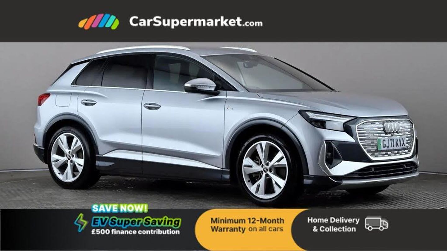 Apple CarPlay/Android Auto, Audi Virtual Cockpit, Bluetooth, Traffic Sign Recognition, Lane Departure Warning, Sat Nav, Digital Radio, Privacy Glass, Heated Front Seats;This 2021 Audi Q4 e-tron S line boasts an MOT valid until September 2026 and a clear vehicle history check, offering peace of mind for its next owner. The S line trim enhances its appeal with a sporty aesthetic and includes desirable features such as a Bluetooth interface for seamless connectivity and heated front seats for added comfort during colder months. Its last service was completed on 26th January 2026 at 38,260 miles.