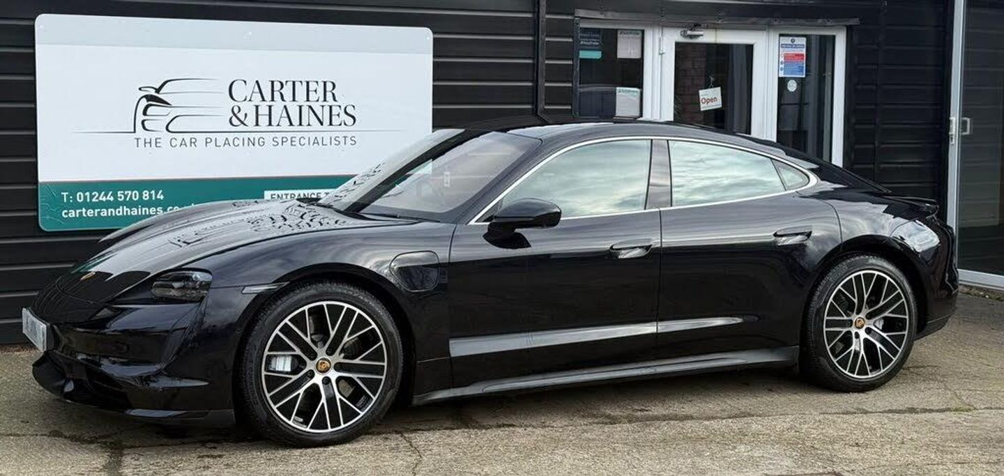 Porsche Taycan Performance Plus 93.4kWh Turbo Saloon 4dr Electric Auto 4WD (680 ps) Exceptionally Equipped and Supercar Acceleration to Die for (0-60 in 2.5 to 2.7 seconds). This Porsche Taycan Performance Plus is finished in Metallic Jet Black with over £19,000 worth of options. Including, Panoramic Roof, 20-Inch Alloy Wheels, Head-Up Display, BOSE Surround, Porsche InnoDrive including Adaptive Cruise Control, Rear-Axle Steering including Power Steering Plus, Memory 18 way Heated Electric Sports Seats, Roof lining in Race-Tex, ParkAssist including Surround View, and so much more. This Used Porsche Taycan Performance Plus has had 0 former keepers (1 in Total). With all Porsche Service History, 2 in total, last June 2025 at 18,513 miles. The car will come with a fresh 12 Month Advisory Free MOT on sale. And is VAT Qualifying. ************************************************************************** DETAILS This Porsche Taycan Performance Plus is 4 Wheel Drive . It has an automatic gearbox. It has One key with remote central locking. ************************************************************************** SPEC This Porsche Taycan Performance Plus has over £19,000 worth of options. Including, Panoramic Roof, 20-Inch Alloy Wheels, Head-Up Display, BOSE Surround, Porsche InnoDrive including Adaptive Cruise Control, Rear-Axle Steering including Power Steering Plus, Memory 18 way Heated Electric Sports Seats, Roof lining in Race-Tex, ParkAssist including Surround View, and so much more. (See Specification Tab for Full Spec) ************************************************************************** MILES This Porsche Taycan Performance Plus has covered around 21,663 miles from new. It was first registered in April 2021 at a list price of £135,093 ************************************************************************** CONDITION The car is in great condition as can be seen in the photos with a some minor marks that are in line with the age and mileage of the car. A Youtube Video of the car is attached. The interior is very clean. ************************************************************************** ABOUT US Secure this car with a £250 deposit now prior to viewing to ensure you dont miss it. We pride ourselves on giving five star service. Check out our reviews on Auto Trader and Google. Contact via our phone numbers or WhatsApp on our website www.carterandhaines.co.uk