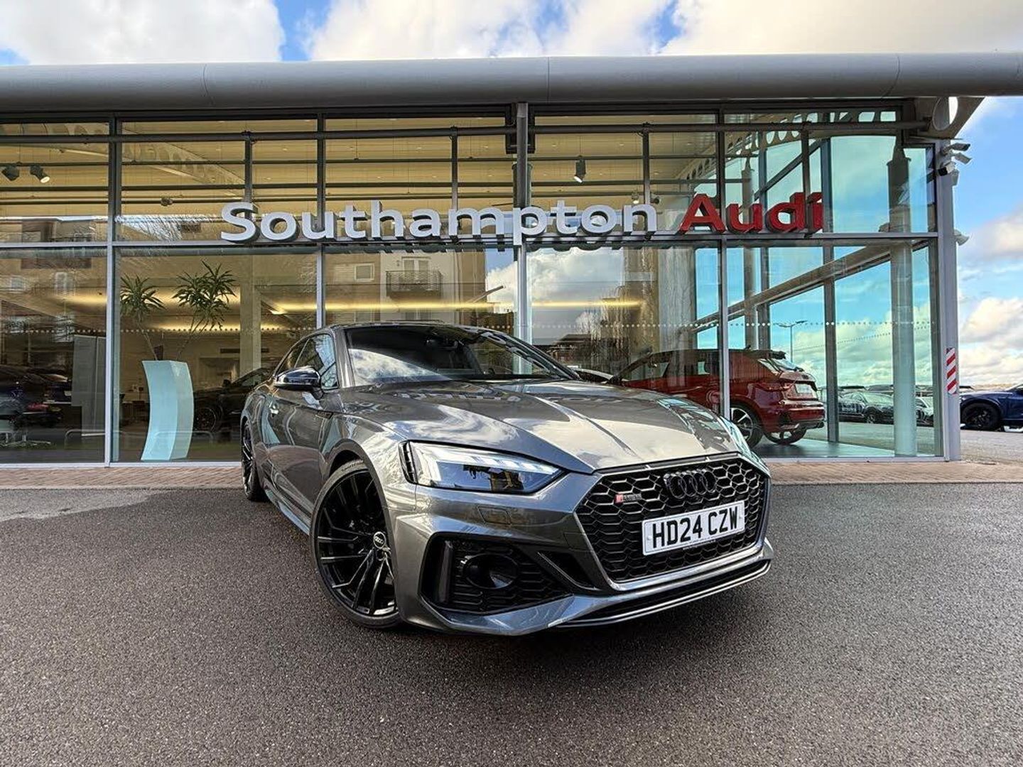 FULL AUDI SERVICE HISTORY, HEATED SEATS, 7'' COLOUR DRIVER INFORMATION SYSTEM, AUDI DRIVE SELECT, AUDI PARKING SYSTEM PLUS WITH FRONT AND REAR SENSORS, 360 SURROUND CAMERA, EXTENDED LED INTERIOR LIGHT PACK, B&O PREMIUM SOUND SYSTEM, COMFORT ACCESS, BLUETOOTH INTERFACE, ELECTROMECHANICAL POWER STEERING, MMI SD CARD NAVIGATION, VOICE CONTROL SYSTEM, 2 USB INTERFACES AND AUX-IN JACK, DAB DIGITAL RADIO MODULE, AUTOMATIC HEADLIGHTS + AUTOMATIC WINDSCREEN WIPERS, HIGH BEAM ASSISTANT, LED DAYTIME RUNNING LIGHTS, PRIVACY GLASS WITH FRONT ACOUSTIC GLAZING, 3 ZONE CLIMATE CONTROL, 4 WAY ELECTRIC LUMBAR SUPPORT FOR DRIVER AND FRONT PASSENGER, FRONT CENTRE ARMREST, ISOFIX CHILD SEAT PREPARATION FOR FRONT PASSENGER/OUTER REAR SEATS INC PASSENGER AIRBAG DEACTIVATION, ELECTROMECHANICAL PARKING BRAKE, KEYLESS START, MMI RADIO PLUS WITH SMARTPHONE INTERFACETHIS CAR COMES WITH THE REMAINDER OF THE MANUFACTURER'S WARRANTY UNTIL 09/07/2027. AUDI SOUTHAMPTON ARE DELIGHTED TO OFFER THIS AUDI RS5 CARBON BLACK 450 PS TIPTRONIC COUPE IN DAYTONA GREY WITH 5684 MILES. WE ARE PROUD TO BE PART OF THE HARWOODS GROUP, A FAMILY RUN BUSINESS ESTABLISHED IN 1931. WITH FOUR APPROVED AUDI RETAILERS WITHIN OUR GROUP, WE HAVE ACCESS TO OVER 400 VEHICLES. IF THIS ISN'T THE RIGHT CAR FOR YOU OUR GROUP STOCK HAS SPECIFICATION TO INCLUDE SUNROOF, LEATHER, HEATED SEATS, APPLE CAR PLAY, HEATED STEERING WHEEL, REVERSE CAMERA, REAR ENTERTAINMENT, TOWBAR, 360-DEGREE CAMERA, COMFORT & SOUND PACK, TECH PACK, PANORAMIC SUN ROOF, TOW BAR, BLACK PACK, AIR SUSPENSION, APPLE CARPLAY, ADAPTIVE CRUISE, MASSAGE SEATS, REFRIGERATOR, AWD, TECHNOLOGY PACK, HEAD UP DISPLAY, VORSPRUNG, TECHNIK, BLACK EDITION, S-LINE, S LINE, EDITION 1, TFSI, QUATTRO, SPORTBACK, LWB. OTHER COLOUR OPTIONS INCLUDING BLACK, BLUE, GREEN, SILVER, WHITE, RED, GREY, YELLOW, ORANGE. INTERIOR OPTIONS OF EBONY, BLACK, IVORY, WHITE, TAN, CREAM, OYSTER, & EURO 6 ULEZ COMPLIANT DRIVE TRAINS.-360 CAMERA, B&O, HEATED SEATS-VIDEO AVAILABLE UPON REQUEST OF THIS CAR. FINANCE OFFERS AND WARRANTIES AVAILABLE