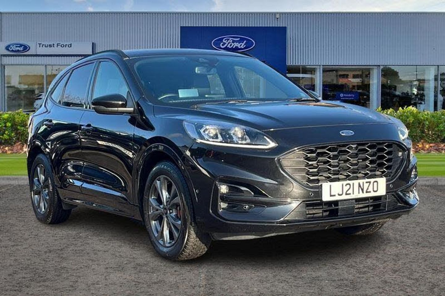 Active park assist, Adaptive cruise control (ACC) with traffic sign recognition, BLIS (Blind spot information system), Driver impairment monitor, Eco coaching, Ford easy fuel, Front and rear parking sensors, Front and rear view camera, Hands free power tailgate, Head up Display, Intelligent speed assist, Lane keeping aid with lane departure warning, Mobile phone wireless charging pad, Power assist steering, Selectable drive modes, SYNC 3 with navigation, DAB audio, Auto dimming rear view mirror, Auto headlamps with high and low beam, Auto wipers, Black roof rails, Door edge guards, Electrically operated front and rear windows, Front LED fog lights with cornering function, Full LED quad projector headlamps with glare free, Large rear spoiler, LED daytime running lights, LED rear lights, Power folding heated door mirrors with puddle lights, Power front/rear windows with global close, Privacy glass, Quickclear heated windscreen, ST Line badges in exterior and interior, ST Line front scuff plates, Twin exhausts, 2nd row sliding seats, 8 way manual passenger seat including lumbar support and height adjust, Alloy pedals, Ambient lighting, Centre console with electronic parking brake, Dark headlining and pillars, Dual electronic automatic temperature control, Flat bottomed leather steering wheel in sensico with red stitching, Front and rear head restraints, Partial leather manual track seat, Rear charging point, Sensico partial premium leather upholstery, Sports seats, ST Line front and rear floor mats, 3x3 point rear seatbelts, Airbags - front driver/passenger, front and rear curtain, Drivers knee airbag, Electronic stability control (ESC) and ABS, Ford MyKey Gen 2 safety system, Hill launch assist, Post collision braking, Powered child proof rear door locks, Pre collision assist with autonomous emergency braking, Red brake calipers, Tyre pressure monitoring system
