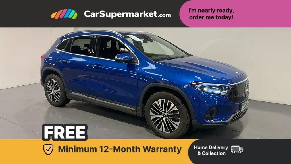 Acoustic ambient protection,DYNAMIC SELECT with a choice of driving modes (max range, ECO, comfort and sport),Easy-pack tailgate,EQ navigation services - map (range display), display charging stations, programming of charging settings and pre entry climate control,Hard-disk navigation,Mercedes Benz emergency call system,Mercedes me connect,PAS,Service indicator,Smartphone integration with Apple CarPlay and Android auto,Trip computer,100KW DC onboard charger,11KW onboard charger,Charging cable for wall box and public charging station - Type 2(mode 3) 5m,Combined charging system CCS-2 connector,Comfort suspension with ride height lowering,DAB Digital radio,MBUX multimedia system with 10" Digital instrument cluster and 10" media display with touchscreen,Mercedes-Benz sound system,3rd brake light,Body colour bumpers,Daytime running lights,Electric front windows,Electric rear windows,Electrically adjustable door mirrors,Front and rear LED light band,Front fog lights,Heated door mirrors,LED High performance headlamps with adaptive highbeam assist,Polished aluminium roof rails,Privacy glass - heat insulating dark tinted glass,Rain sensor windscreen wipers,Rear side wing doors,Rear wiper,3 seat bench in 2nd row,3 spoke multifunction sport steering wheel in ARTICO man made leather,40:20:40 split folding rear seats,Ambient lighting with choice of 64 colour settings,Artico man-made leather upholstery,Double Cupholder,Fluorescent jacket,Front and rear head restraints,Gearshift paddles on steering wheel,Heated front seats,Reach and rake adjustable steering column,Rear armrest with storage + through load,Roof lining - Black fabric,Single front passenger seat,Stowage compartment with retractable cover,THERMATIC automatic climate control,Interior light package - EQA,Mirror package without dimming interior and drivers exterior mirrors- EQA,Parking package with reversing camera - EQA,Seat comfort pack - EQA,Stowage package - EQA,3 rear seatbelts,6 airbags - Driver, front passenger, curtain and side airbags,ABS,Child locks on rear doors,Electric parking brake,ESP,Front passenger airbag deactivation,Isofix child seat anchor points on outer rear seats,Knee bags,Radar-based recuperation,Guard 360 degree vehicle protection,Remote central locking,Star pattern trim elements,18" Multi spoke light alloy wheels aerodynamically optimised painted in black with high sheen finish,Summer tyres,Tirefit