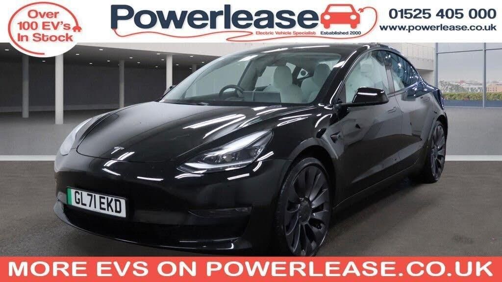 This 2021 Tesla Model 3 Performance is a rare find, having had only one owner from new and boasting impressively low mileage for its age. As an electric vehicle with Four Wheel Drive, it offers a smooth and responsive driving experience. Inside, you'll appreciate the Premium Engineered Material in a stylish Black and White finish, along with heated rear seats for added comfort. The Model 3 Performance also comes equipped with LED headlights and Blind Spot Information to enhance your awareness on the road, plus air conditioning to keep the cabin at the perfect temperature. The performance of this Model 3 is truly exceptional, with a remarkable 0-60mph acceleration time of just 3.1 seconds, setting it apart from many other vehicles. When new, it offered a maximum range of 340 miles on a full charge, and charging is convenient, taking approximately 12 hours at home using a 7kW charger, or a rapid 26 minutes from empty to 80% at a public charging station. Furthermore, this model provides generous boot space, making it practical for everyday use and longer journeys. BATTERY HEALTH CHECK AVAILABLE ON REQUEST | SPECIALIST EV EXTENDED WARRANTIES | ALL VEHICLES FULLY INSPECTED | ALL VEHICLES SERVICED & MOT'ED | HPI CHECKED AND CERTIFIED | FINANCE AVAILABLE | PART EXCHANGE AVAILABLE | CLICK AND COLLECT AVAILABLE | HOME DELIVERY AVAILABLE | BUY ONLINE VIA OUR WEBSITE WWW.POWERLEASE.CO.UK | IN BUSINESS FOR OVER 20 YEARS EST 2000 |