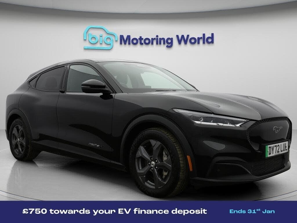 18'' alloy wheels,Leather Seats-Our Ford Mustang Mach-E is finished in Black. Specification includes a range of fantastic features including 18'' alloy wheels, Leather Seats, Apple CarPlay, Adaptive Cruise Control, Privacy Glass, Rear View Camera, Heated Steering Wheel, Internet, Bluetooth, Blind Spot Assist Specification information is supplied by CAPHPI and may vary to the actual car. This data does not form any part of a buying contact. Please check specification prior to purchase in-store. The MOT is valid until January 2027, visit bigmotoringworld.co.uk for more photos, a 360 tour, service history and a free HPI report.Were BIG on peace of mind and this Black Ford Mustang Mach-E has completed our comprehensive 200 point inspection and passed all checks. Its ready for you to drive away with immediate collection in-store. We include a 90-day warranty as standard plus an option to extend for up to 3 years.Reserve this car exclusively for you, safely and securely at bigmotoringworld.co.uk, with a fully refundable £99 deposit. Test drive before you buy, with no commitment, no hassle and a completely haggle free experience. Still searching and want to see thousands more cars? We are BIG on choice with over 8000 cars to choose from.Visit our award winning web site bigmotoringworld.co.uk.Were Big Motoring World and were BIG on what matters to you.