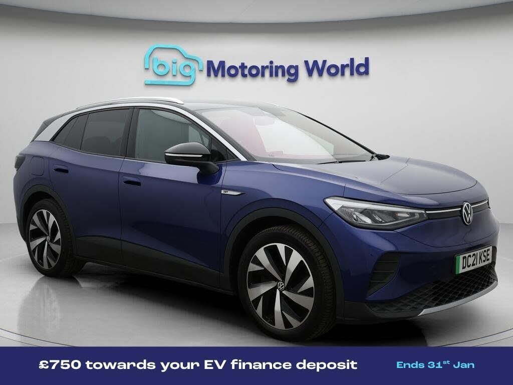 20'' Alloy Wheels,Apple CarPlay-Our Volkswagen ID.4 is finished in Blue. Specification includes a range of fantastic features including 20'' Alloy Wheels, Apple CarPlay, Adaptive Cruise Control, TV, Privacy Glass, Heated Seats, Rear View Camera, Internet, Bluetooth, Parking Sensors Specification information is supplied by CAPHPI and may vary to the actual car. This data does not form any part of a buying contact. Please check specification prior to purchase in-store. The MOT is valid until January 2027, visit bigmotoringworld.co.uk for more photos, a 360 tour, service history and a free HPI report.Were BIG on peace of mind and this Blue Volkswagen ID.4 has completed our comprehensive 200 point inspection and passed all checks. Its ready for you to drive away with immediate collection in-store. We include a 90-day warranty as standard plus an option to extend for up to 3 years.Reserve this car exclusively for you, safely and securely at bigmotoringworld.co.uk, with a fully refundable £99 deposit. Test drive before you buy, with no commitment, no hassle and a completely haggle free experience. Still searching and want to see thousands more cars? We are BIG on choice with over 8000 cars to choose from.Visit our award winning web site bigmotoringworld.co.uk.Were Big Motoring World and were BIG on what matters to you.