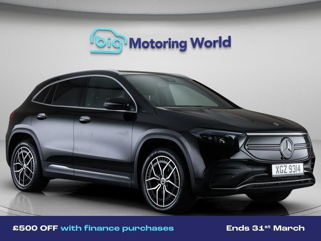 £500 towards your finance depo-Our Mercedes-Benz EQA is finished in Black. Specification includes a range of fantastic features including £500 towards your finance deposit, Comfort Pack, All Wheel Drive, 19'' Alloy wheels, Part Leather Seats, Air Suspension, Burmester Speakers, AMG body styling, Parking Pack, Premium Specification information is supplied by CAPHPI and may vary to the actual car. This data does not form any part of a buying contact. Please check specification prior to purchase in-store. The MOT is valid until December 2026, visit bigmotoringworld.co.uk for more photos, a 360 tour, service history and a free HPI report.Were BIG on peace of mind and this Black Mercedes-Benz EQA has completed our comprehensive 200 point inspection and passed all checks. Its ready for you to drive away with immediate collection in-store. We include a 90-day warranty as standard plus an option to extend for up to 3 years.Reserve this car exclusively for you, safely and securely at bigmotoringworld.co.uk, with a fully refundable £99 deposit. Test drive before you buy, with no commitment, no hassle and a completely haggle free experience. Still searching and want to see thousands more cars? We are BIG on choice with over 8000 cars to choose from.Visit our award winning web site bigmotoringworld.co.uk.Were Big Motoring World and were BIG on what matters to you.