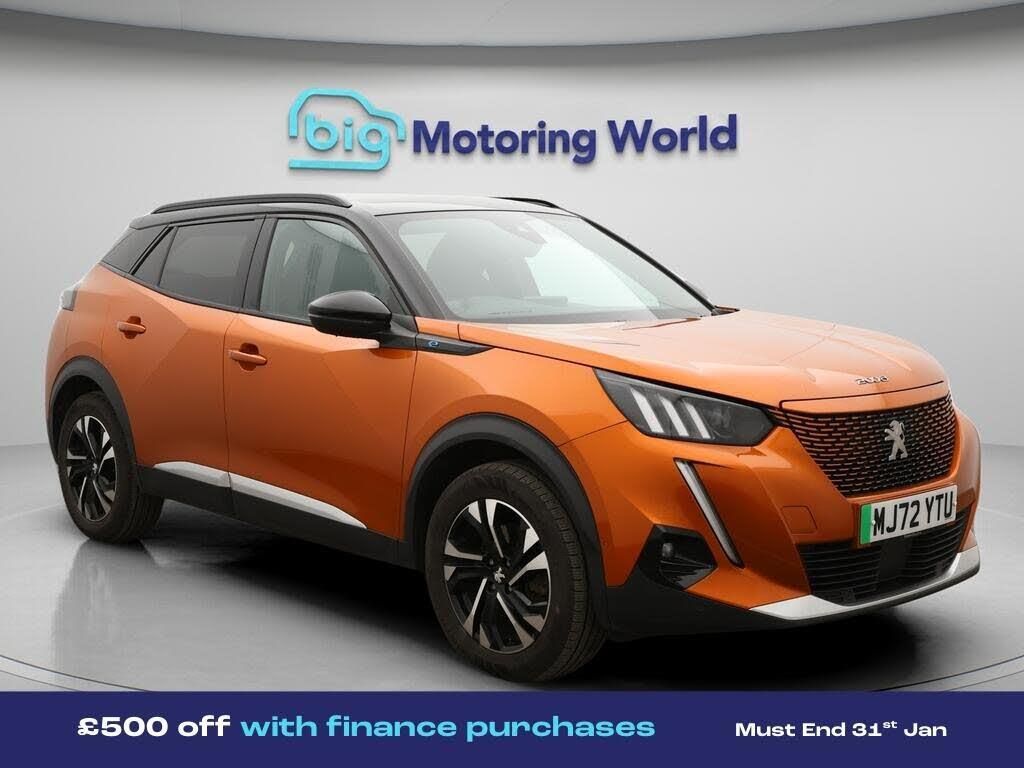 £500 towards your finance depo-Our Peugeot E-2008 is finished in Orange. Specification includes a range of fantastic features including £500 towards your finance deposit, Apple CarPlay, Visibility Pack, Heated Seats, Rear View Camera, Bluetooth, Parking Sensors, Ambient Lighting, DAB Radio , Touch Screen Control Specification information is supplied by CAPHPI and may vary to the actual car. This data does not form any part of a buying contact. Please check specification prior to purchase in-store. The MOT is valid until September 2026, visit bigmotoringworld.co.uk for more photos, a 360 tour, service history and a free HPI report.Were BIG on peace of mind and this Orange Peugeot E-2008 has completed our comprehensive 200 point inspection and passed all checks. Its ready for you to drive away with immediate collection in-store. We include a 90-day warranty as standard plus an option to extend for up to 3 years.Reserve this car exclusively for you, safely and securely at bigmotoringworld.co.uk, with a fully refundable £99 deposit. Test drive before you buy, with no commitment, no hassle and a completely haggle free experience. Still searching and want to see thousands more cars? We are BIG on choice with over 8000 cars to choose from.Visit our award winning web site bigmotoringworld.co.uk.Were Big Motoring World and were BIG on what matters to you.