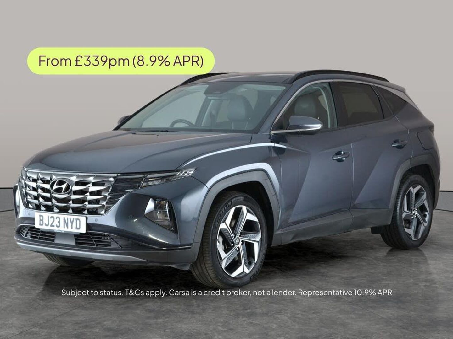 Experience the Hyundai Tucson SUV in sleek grey, packed with desirable features. Enjoy breathtaking views through the panoramic sunroof, and stay connected with Apple CarPlay and wireless charging. Comfort is guaranteed with heated seats, a heated steering wheel, and driver memory electric seats. Effortless journeys await with keyless entry, satellite navigation, and cruise control. Enhanced safety comes as standard, thanks to blind spot assist, lane departure warning, and a reversing camera, making every drive enjoyable and secure. 3 services recorded, last serviced on 29/01/2026 at 23,509 miles. MOT to 28/01/2027. Visit our website for service history, online valuation, full vehicle specification plus multiple images. This vehicle is VAT qualifying. Any feature/option specified here is from 3rd party data. We cannot guarantee the accuracy of any specification supplied by a 3rd party. We recommend that you physically check the specification of the vehicle on site prior to purchase. This information does not form part of the buying contract. Terms & Conditions apply. We have over 2,000 cars available from our 10 national branches, check our website to see all our stock. Our Trustpilot rating is 4.4/5 with over 9,000 reviews.