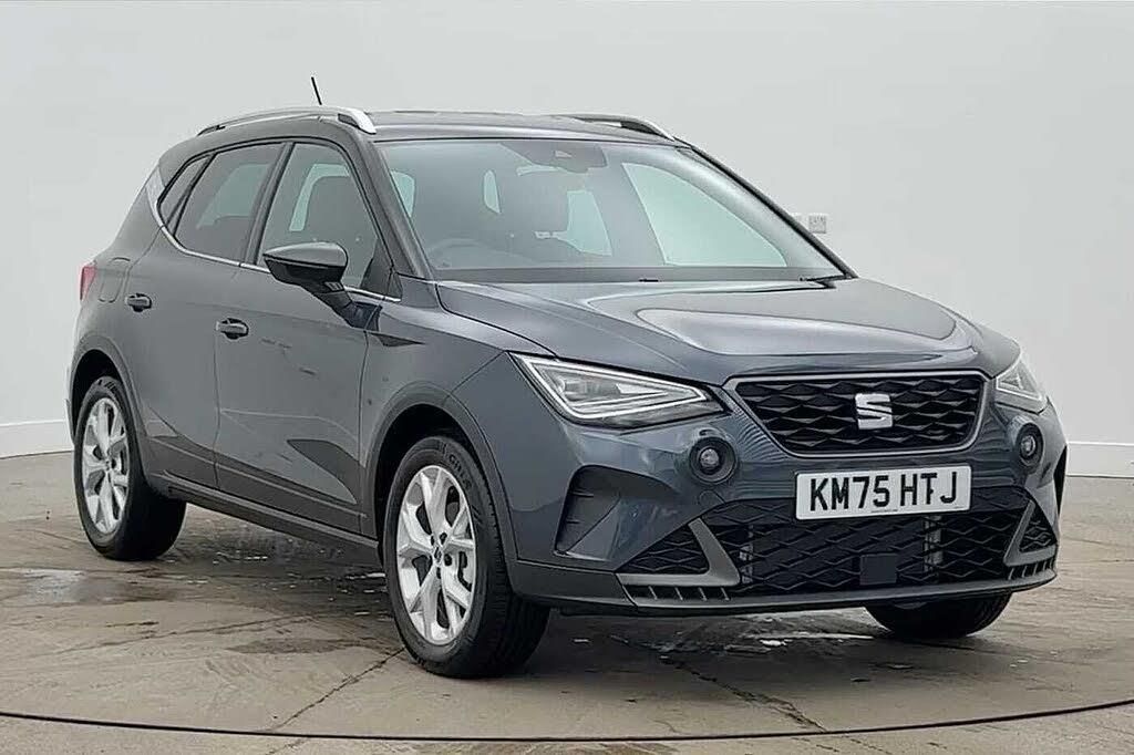 Paint - Metallic, Metallic - Magnetic tech grey with black roof, Exterior Features, Dark tinted rear windows, Electric front/rear windows, Rain sensing wipers, Rear window wash/wipe, Anti theft roof antenna, Body coloured bumpers, Body coloured door handle inserts, Chrome roof rails and window surrounds, Protective side mouldings, Rear side wing doors, Rear spoiler, Twin exhaust pipe styling hidden exhaust pipe, Visible VIN plate, Automatic activation of hazard warning lights, Front fog lights with cornering function and rear fog light, FULL LED automatic headlights with dynamic headlight range control, coming and leaving home, LED daytime running lights, LED rear tail lights and licence plate lights, Third brake light, Safety, ABS, Emergency Brake Assist (EBA) and front assist, Hill hold control, Multi-Collision braking, Traction control, Electric speed sensitive power steering, Lane keeping system, SEAT Drive profile - Four different models normal-sport-eco-individual, steering response, throttle response and gear shifts mode, Auto dimming interior rear view mirror, Electrically adjustable, heated and folding door mirrors, Roof colour door mirrors, 3 point seatbelts on all rear seats, Active front headrests, Child locks on rear doors, Driver and front passenger airbags with front passenger airbag de activation, front side and curtain airbags, Front and rear seatbelt reminder, Tiredness recognition system, Tyre pressure monitoring system, Audio / Communications, E-call, 9.2" colour touchscreen with navigation system, voice control and USB port (type c), Bluetooth interface for hands free and audio streaming, DAB digital radio and AM/FM radio, Steering wheel mounted audio controls, Driver Convenience, Wireless phone charger, Miscellaneous, 'Lights On' Reminder warning buzzer, 8" Digital cockpit, Digital clock, Full link smartphone integration with mirror link, wireless apple carplay, Google android auto + USB Type C cable for apple and android devices, Low fuel warning light, Outside temperature display, RPM counter, Trip computer, Trim, Titan black dashboard, 3 seat bench in 2nd row, 60/40 split folding rear seat, Height adjustable front seats, ISOFIX points in outer rear seats with top tether anchorage points, Single front passenger seat, Two front and three rear height adjustable headrests, Interior Features, Aircare filter, Dual zone climate control, 2 cupholders, Black interior roof, Cloth upholstery, Double boot floor, Gear shift indicator, Height/reach adjustable steering column, Illuminated air vent surrounds, Perforated flat bottomed leather steering wheel/gear knob/handbrake with red stitching and FR logo, Potentiometer, Steering wheel mounted gearshift paddles, Front courtesy light with front reading lights, Illuminated boot, Instrument lighting with brightness control, Interior ambient lighting, Interior light in footwell, central console and door panel, Driver sunvisor with covered mirror + card holder, Passenger sunvisor with vanity mirror, Packs, Interior chrome pack - Arona, Safe and driving pack (S) - Arona, Security, Alarm with back up horn with tow away protection, Deadlock, Electronic engine immobiliser, Locking wheel bolts, Remote central locking, Wheels, 17" Dynamic alloy wheels