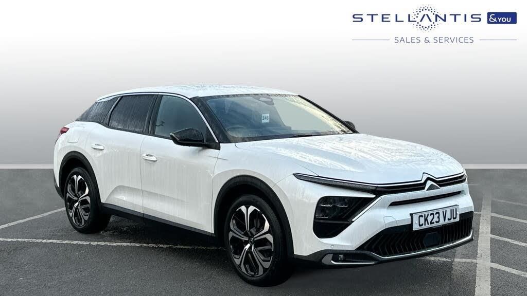 12in Central Touch Screen with Separate Heating and Ventilation controls, 12V Socket - Centre Console, 12V Socket - Luggage Compartment, 2 Front USB Plugs - 1 USB Type C Charge and Data in Front of Centre Console - 1 USB Type C Charging Only under Centre Front Armrest, Hi Fi System - 8 Loudspeakers, Inductive Wireless Smartphone Charging, Coffee Break Alert, Driver Information Panel with Lighting Fault Indicator, e-Toggle Drive Selector, Extended Head Up Display - e-HUD - with Windscreen Projection, Outside Temperature Indicator, Tyre Under Inflation Detection, 19in Alloy Wheels - Aero-X Diamond Cut with Onyx Black Paint and Onyx Black Aero Inserts, Acoustic Insulated and Tinted Windscreen with Head Up Display - eHUD, Body Colour Exterior Door Handles, Chrome Citroen Chevrons Integrated into Front Grille and Extending Outward into Front Light Signature, Compressor with Puncture Repair Kit, Exterior A-pillar Black Trim, Extra Tinted - Heated Rear Window, Extra Tinted Rear Quarter Panel Windows, Front Electric Windows, Gloss Black Citroen Chevrons with Chrome Surround - Chrome Citroen Lettering and C5 X Badging on Rear Tailgate, Gloss Black Door Mirrors, LED Front Indicators, Locking Wheel Nuts, Rear Electric Windows, Remote 4-Window Opening-Closing with Plip, Satin Chrome Trim on Rear Bumper, Tinted Front and Extra Tinted Rear Windows, Automatic Illumination of Headlamps when Unlocking, Automatic Welcome and Follow Me Home Lighting, Front LED Daytime Running Lights, LED Fog Lights with Static Cornering Function Integrated into Front Bumper Apron, LED Rear Lights - High Level LED Brake Light - LED Rear Number Plate Lighting, 7in Digital Instrument Cluster with Smoked Glass - 10 plus 2 Indicator Lights and Ambiance Backlighting, Automatic Dual Zone Air Conditioning, Automatic Rain-Sensitive Flat Blade Wipers with Integrated Wash Function, Black Leather-Effect Central Armrest with Overstitching, Black Leather-Effect Front and Rear Door Panel Inserts, Black Tie Down Rings for Secure Load Storage, Carpeted Boot, Courtesy Lighting, Dashboard Mounted Black - Backlit - Chrome-Ringed Start-Stop Button, Driver and Front Passenger Sun Visors with Mirrors and LED Lighting, Electrochrome Frameless Rear View Mirror, Footrest - Drivers, Front and Rear Door Storage Pockets, Front and Rear Passenger Storage Areas in Central Console, Front Seat Back Pockets, Height and Reach Adjustable Steering Wheel, High Efficiency Air Filter, Illuminated Passenger Glovebox, Interior LED Welcome Lighting - Door Handles - Front Foot Wells - Driver Instrument Panel, Magic Handles, Mechanical Drivers Seat with Fore-Aft Adjustment - Backrest Adjustment - Height Adjustment - Lumbar Adjustment and Headrest, Mechanical Passenger's Seat with Fore-Aft Adjustment - Backrest Adjustment - Height Adjustment - Lumbar Adjustment and Headrest, Mistral Carpet with Reinforced Drivers Foot Well, Multifunction Heated - Grained Leather Steering Wheel with Paddle Shifters - Driving Assistance and Infotainment Control Functions, My Citroen Drive Plus, Plastic Boot Sill, Rear Air Vents with Independent Opening-Closing and Left and Right Airflow Settings for Rear Seat Passengers, Rear Armrest Storage and Cup Holders, Roll Up Awning Fitted to Tailgate, Satin Chrome Dashboard Strip and Satin Chrome Decor on Bottom of Door Panels, Satin Chrome Highlights on Air Vents and Steering Wheel, Smartphone Storage in Front of Front Centre Armrest, Storage Area for Emergency Safety Triangle-First-Aid Kit, Storage Box Under Main Boot Floor, Storage Under Central Armrest, 2 Rear USB Plugs - Charging Only, Advanced Driver Assistance System with Radar Controlled Active Safety Brake, Automatically Illuminating LED Headlamps with Automatic High Beam Assist, Citroen Connect Box with Emergency and Assistance System, Dashboard and Door Panels Decor - Wood Film and Grain, Door Mirrors - Electronic - Heated - Folding with Integrated LED Indicator and LED Approach Lighting in Black - Extended Blind Spot Detection, Dual Tone Horn, Front and Rear Parking Sensors and Reversing Camera with Top Rear Vision with Wash Function, Citroen Advanced Comfort Suspension, Variable Power Assisted Steering, ABS - Anti-Lock Braking System, Curtain Airbags, Deadlocks, Driver and Front Passenger Airbags with Passenger Deactivation Switch, Electric Child Locking Functionality on Rear Doors, Electric Parking Brake, ESP - Electronic Stability Programme including Traction Control, Five 3-Point Inertia Reel Seatbelts, Front Inertia Reel Seatbelt with Pre-Tensioners and Force-Limiters, Front Lateral Airbags, Hill Start Assist, In-Crash Braking, Outer Rear Seats with ISOFIX Mounting Points Including Top Tether, Pedestrian Protection - Active Bonnet, Perimetric - Volumetric and Anti-Tilt Alarm, Proximity Keyless Entry - Doors - Boot and Fuel Filler Flap - and Start, Unfastened Seatbelt Visual Warning System on All Seats