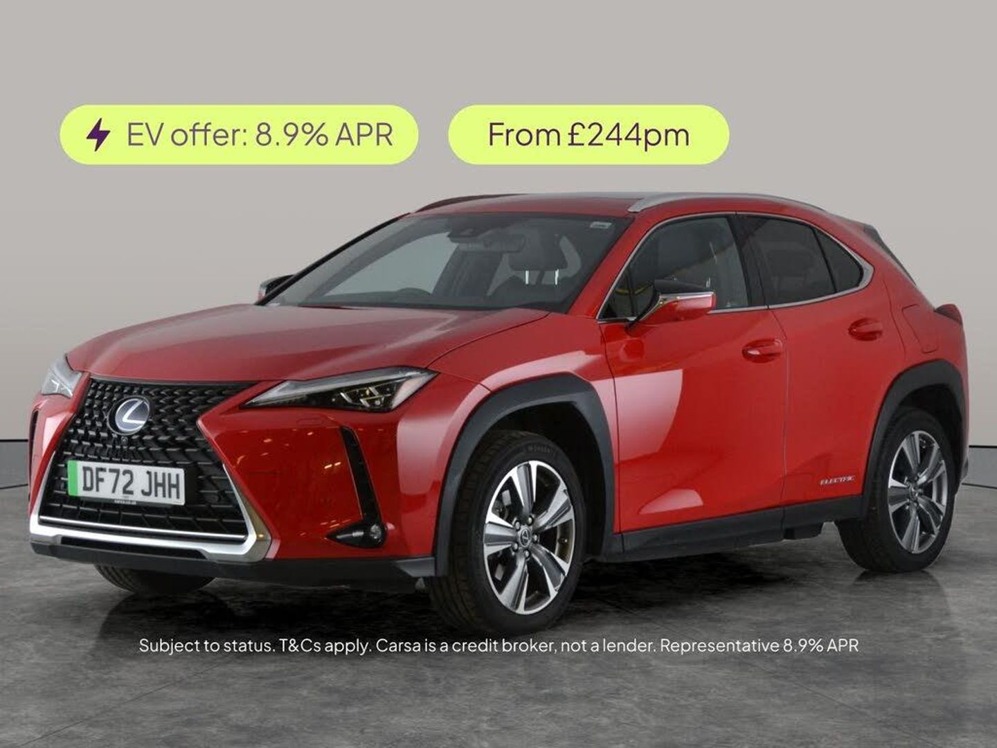 Experience luxury in this red Lexus UX 300e Electric SUV. Enjoy premium features like upgraded sound, heated and cooled leather seats, a 360-degree camera with surround view, and a heated steering wheel. Stay safe with blind spot assist and lane departure warning, while LED headlights light your way. Convenience comes with keyless entry, electric seats, sat nav, and Bluetooth audio streaming. This Lexus delivers comfort, style, and advanced technology for a truly effortless drive. 3 services recorded, last serviced on 22/01/2026 at 21,575 miles. MOT to 26/01/2027. Visit our website for service history, online valuation, full vehicle specification plus multiple images. This vehicle is VAT qualifying. Any feature/option specified here is from 3rd party data. We cannot guarantee the accuracy of any specification supplied by a 3rd party. We recommend that you physically check the specification of the vehicle on site prior to purchase. This information does not form part of the buying contract. Terms & Conditions apply. We have over 2,000 cars available from our 10 national branches, check our website to see all our stock. Our Trustpilot rating is 4.4/5 with over 9,000 reviews.