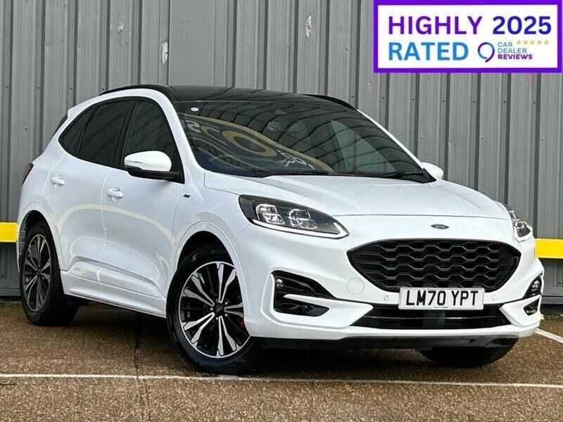 12v Power Point in Cargo Area, 12V Power Point in Floor Console, 12v Socket - Voltage Regulator, B and O Premium Audio System with Large Instrument Cluster, FordPass Connect, Mobile Phone Wireless Charging Pad, Satellite Navigation - Navigation Center, Cruise Control with Adjustable Speed Limiter, Front and Rear Parking Sensors, Pre-Collision Assist with Autonomous Emergency Braking - Camera Detection, Rear View Camera, Selectable Drive Modes, Trip Computer, Tyre Pressure Monitoring System, 19in Alloy Wheels - 5x2 Spoke - High Gloss - Machined, Aluminium - Finish Front Scuff Plates with ST-Line Script, Black Roof Rails, Dual Exhaust Tailpipes with Unique Brushed Stainless Steel Finish, Exterior Door Handles - Body Coloured, Front and Rear Bumper - Sporty Body Colour with Rear Ebony High-Gloss Insert, Front Windows - Laminated Glass, Heated and Power Folding Door Mirrors with Puddle Lights, Kuga Badge, Large Rear Spoiler, Locking Wheel Nuts, Lower Bodyside Moulding - Body Colour, Power Front and Rear Windows with Shot up and Down - One Global Closing, Power Opening Panoramic Roof, Privacy Glass, Quickclear Heated Windscreen, Red Brake Calipers, Rocker Panel Mouldings - Body Colour - ST-Line Design, ST-Line Badge on Left and Right Side Wings, ST-Line Bodystyling Kit, ST-Line Front and Rear Bumper Moulding - Body Colour, Tailgate Handle - Body Colour, Tow Hooks - Front and Rear, Twin Exhausts, Tyre Inflation Kit, Automatic Headlights with Auto High-Low Beam, Front LED Fog Lights with Cornering Function, Full LED Headlamps, Headlights - Automatic Follow Me Home Lighting, Headlights - Unique Bending, High-Mounted Brake Light, LED Daytime Running Lights, Rear Lights - LED, 10-Way Power Adjustable Drivers Seat, 2nd Row Sliding Seats with 60-40 Split, 8-Way Manual Passenger Seat including Lumbar Support and Height Adjust, Alloy Pedals, Ambient Lighting, Auto Dimming Rear View Mirror, Auto Wipers, Centre Console with Electronic Parking Brake, Dark Headliner and Pillars, Driver and Passengers Sun Visor with Illumination, Dual Zone Electronic Automatic Temperature Control - DEATC, Flat Bottom Steering Wheel in Sensico with Red Stitching, Floor Mats - Front and Rear - ST-Line, Front Seats - 2-Way Manual Height Adjust Passive Head Restraints, Front Seats - Drivers and Passengers Seatback Map Pockets, Full Digital 12.3in Instrument Cluster, Gear Shift - Unique Leather Trimmed Knob with Satin Aluminium Insert and Red Gaiter Stitching, Glovebox Lights, Handsfree Power Tailgate, Heated Driver and Passenger Seats, Heated Rear Seats, Load Compartment - Lights, Load Compartment - Tie Down Hooks, Load Compartment Carpet, Lower Door Frame Beltline - Black, Mini Overhead Console with Sunglasses Holder Bin, MyKey Gen II, Rear Seat Centre Head Restraint, Rear Seats - 2-Way Head Restraint Up-Down, Rear Seats - Folding Centre Armrest with Integrated Cup Holder, Rear Seats - Sliding Seat Adjust Tracks - Fore-Aft, Remote Tailgate Release, Removable Package Tray, Sports Seats, Steering Column - Rake and Reach Adjustment, ST-Line Leather Gear Knob, Upper Door Frame Beltline - Black, EPAS - Electric Power Assisted Steering, Intelligent Speed Assist, Standard Duty Suspension, Airbag - Driver and Front Passenger Side, Airbag - Front Passenger Deactivation Switch, Airbags - Driver and Front Passenger, Airbags - Front and Rear Side Curtain, Automatic Door Relocking, Engine Immobiliser - SecuriLock, ESC - Electronic Stability Programme and ABS - Anti Lock Braking System, Ford Easy Fuel System, Ford Key Free System with Ford Power Start Button - Keyless Start, Lane Keeping Aid with Lane Departure Warning, Manual Childproof Locks on Rear Doors, Post Collision Braking, Power Door Deadlocks - Double Locking, Power Door Locks, Remote Power Central Double Locking Doors, Seat Belt - Drivers - Front Passenger and Rear Seat Belt Reminder Alert, Seat Belts - Front 3-Point Seatbelts with Load Limiter, Seat Belts - Front Height Adjustable, Seat Belts - Rear Retrac