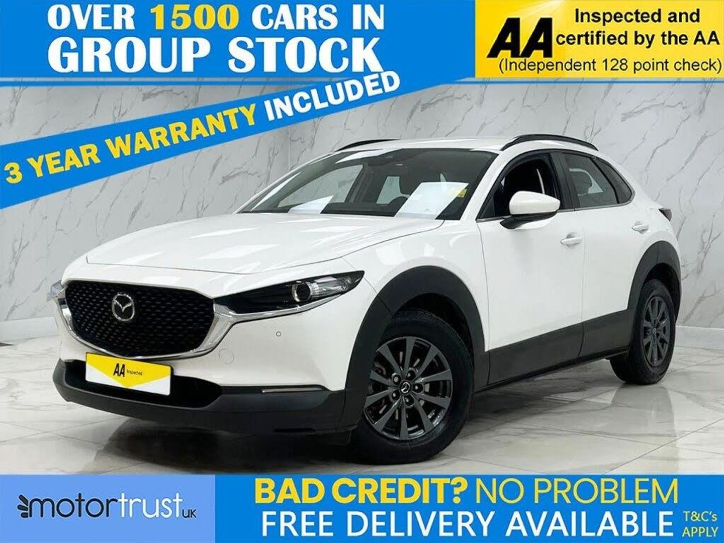 This 2022 Mazda CX-30 e-SKYACTIV G SE-L Lux boasts a full dealership service history and has had only one owner, offering excellent provenance. This stylish SUV features a 2.0L petrol engine and meets Euro 6 emissions standards. Inside, you'll find a comfortable and convenient cabin equipped with heated front seats offering three stage settings, smart keyless entry, and an integrated Bluetooth system for seamless connectivity. For added ease and safety, it includes front and rear parking sensors and Mazda Radar Cruise Control, which provides adaptive cruise control functionality. The CX-30 SE-L Lux is designed to offer a superior driving experience, highlighted by its impressive fuel economy of 48 mpg and low CO2 emissions, making it a more economical and environmentally conscious choice compared to similar vehicles. Its low insurance group rating further enhances its appeal, suggesting lower running costs for owners. A clear vehicle history check confirms its sound condition, providing peace of mind for its next owner. Part Exchange Welcome. All Majors Cards Accepted. We Have Finance Available. A Wide Range of Warranties. We Also Offer Low Cost, Nationwide Delivery Available From £1.50 a Mile. **Every endeavour is made to ensure specifications and descriptions are correct. Due to model changes specification may vary. Phone for details. MPG figures shown are government official figures.**
