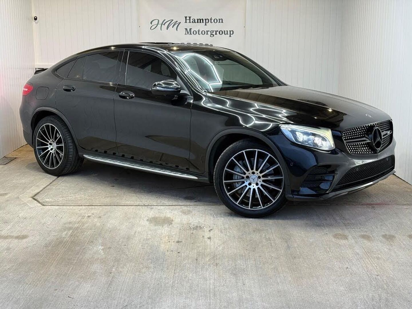 Welcome to Hampton Motorgroup (Solihull, West Midlands). We specialize in used motor vehicles and have a showroom with over 30 cars in stock at all times this is our Mercedes GLC43, 2 keys, service history, MOT till 28/11/2026. Comes with sliding sun roof, sat nav, black leather/alcantara interior, climate control, parking sensors, 20'' diamond cut alloy wheels, led xenon headlights, cruise control, reverse camera, heated seats, electric memory seats, electric tailgate, 360 camera, burmeister sound system, carbon interior trim. First to see will buy, please visit website for more great deals, all card payments welcome, warranty and finance available, delivery can be arranged, px welcome, all vehicles come with a 6 month warranty, extended warranty also available at extra cost (12 months 599, 2 years 849, 3 years 999) VIEWINGS BY APPOINTMENT ONLY!