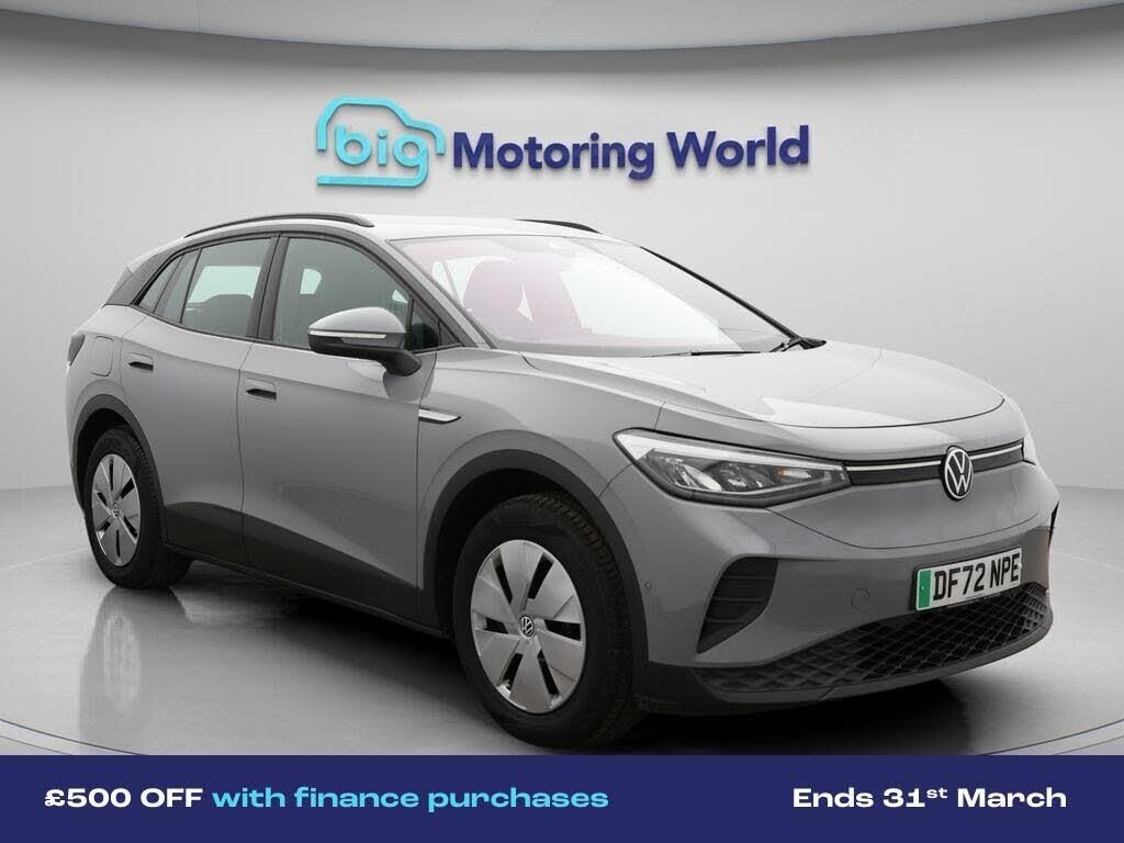 £500 towards your finance depo-Our Volkswagen ID.4 is finished in Grey. Specification includes a range of fantastic features including £500 towards your finance deposit, Comfort Pack, Part Leather Seats, Apple CarPlay, Adaptive Cruise Control, Android Auto, Satellite Navigation, Heated Seats, Rear View Camera, Heated Steering Wheel Specification information is supplied by CAPHPI and may vary to the actual car. This data does not form any part of a buying contact. Please check specification prior to purchase in-store. The MOT is valid until February 2027, visit bigmotoringworld.co.uk for more photos, a 360 tour, service history and a free HPI report.Were BIG on peace of mind and this Grey Volkswagen ID.4 has completed our comprehensive 200 point inspection and passed all checks. Its ready for you to drive away with immediate collection in-store. We include a 90-day warranty as standard plus an option to extend for up to 3 years.Reserve this car exclusively for you, safely and securely at bigmotoringworld.co.uk, with a fully refundable £99 deposit. Test drive before you buy, with no commitment, no hassle and a completely haggle free experience. Still searching and want to see thousands more cars? We are BIG on choice with over 8000 cars to choose from.Visit our award winning web site bigmotoringworld.co.uk.Were Big Motoring World and were BIG on what matters to you.