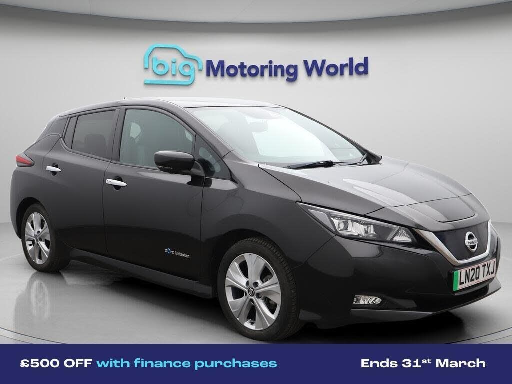 £500 towards your finance depo-Our Nissan Leaf is finished in Black. Specification includes a range of fantastic features including £500 towards your finance deposit, 17'' Alloy Wheels, Leather Seats, Satellite Navigation, Privacy Glass, Rear View Camera, Heated Steering Wheel, Blind Spot Assist, Bose, Parking Sensors Specification information is supplied by CAPHPI and may vary to the actual car. This data does not form any part of a buying contact. Please check specification prior to purchase in-store. The MOT is valid until January 2027, visit bigmotoringworld.co.uk for more photos, a 360 tour, service history and a free HPI report.Were BIG on peace of mind and this Black Nissan Leaf has completed our comprehensive 200 point inspection and passed all checks. Its ready for you to drive away with immediate collection in-store. We include a 90-day warranty as standard plus an option to extend for up to 3 years.Reserve this car exclusively for you, safely and securely at bigmotoringworld.co.uk, with a fully refundable £99 deposit. Test drive before you buy, with no commitment, no hassle and a completely haggle free experience. Still searching and want to see thousands more cars? We are BIG on choice with over 8000 cars to choose from.Visit our award winning web site bigmotoringworld.co.uk.Were Big Motoring World and were BIG on what matters to you.