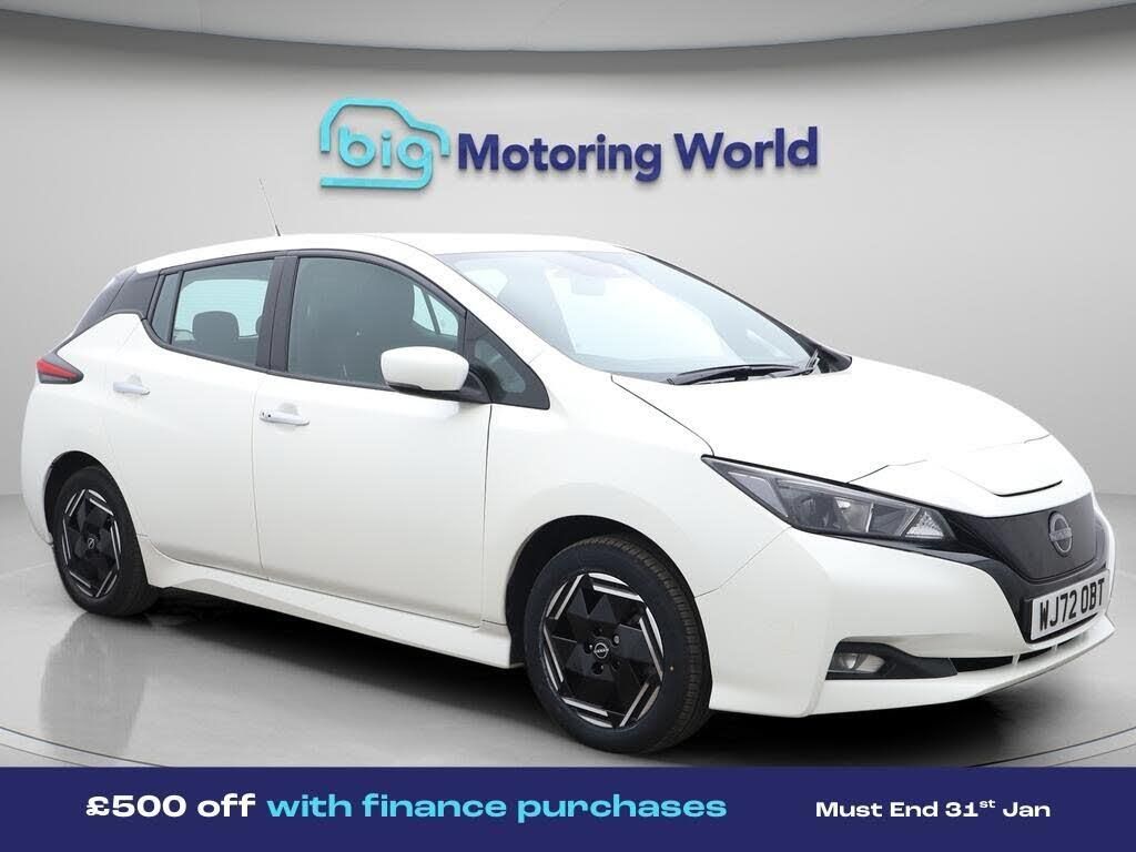 £500 towards your finance depo-Our Nissan Leaf is finished in White. Specification includes a range of fantastic features including £500 towards your finance deposit, Rear View Camera, Bluetooth, Blind Spot Assist, Parking Sensors, 2 Zone Climate, Cruise Control, Climate Control, Voice Control, DAB Radio Specification information is supplied by CAPHPI and may vary to the actual car. This data does not form any part of a buying contact. Please check specification prior to purchase in-store. The MOT is valid until December 2026, visit bigmotoringworld.co.uk for more photos, a 360 tour, service history and a free HPI report.Were BIG on peace of mind and this White Nissan Leaf has completed our comprehensive 200 point inspection and passed all checks. Its ready for you to drive away with immediate collection in-store. We include a 90-day warranty as standard plus an option to extend for up to 3 years.Reserve this car exclusively for you, safely and securely at bigmotoringworld.co.uk, with a fully refundable £99 deposit. Test drive before you buy, with no commitment, no hassle and a completely haggle free experience. Still searching and want to see thousands more cars? We are BIG on choice with over 8000 cars to choose from.Visit our award winning web site bigmotoringworld.co.uk.Were Big Motoring World and were BIG on what matters to you.