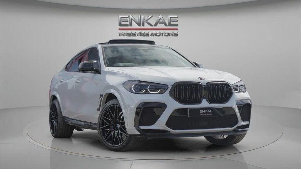 Enkae are proud to show you our 2021 BMW X6M with fantastic specifications including: Full Car Wrap With Front End PPF(Original In Red), Sky Lounge Panoramic roof, Bowers And Wilkins sound, Heated steering, Laser lights, Carbon Mirrors, Carbon boot lip spoiler, X6M Bucket seats, Heated Front Seats,, 22" Upgraded Alloys, Wireless charging, Engine sport plus, visibility pack,technology plus pack, carbon interior And Much More. Available now at our Huddersfield showroom. Here At Enkae We Are A Well Established Car Sales Business Specialising In High-Quality Sports, Performance & Prestige Vehicles. We Are Delighted To Offer This Truly Magnificent Car. This 2021 BMW X6 M i V8 Competition boasts exceptionally low mileage for its age, having covered just 28,500 miles, and comes with a clear vehicle history check. This striking example of the Competition trim features a powerful 4.4 litre petrol engine paired with a four wheel drive drivetrain, meeting Euro 6 emission standards. It also offers a substantial towing weight of 3000 kg. Notable features include the Technology Plus Pack, which incorporates a Premium Branded Sound System, and the Visibility Pack with Adaptive LED headlights. Comfort is enhanced by the Panorama Glass Roof Sky Lounge and Automatic Air Conditioning with Four Zone Control, including independent rear air conditioning and climate control. The performance of this X6 M is truly exceptional, highlighted by its rapid 0-60mph acceleration in just 3.8 seconds. This impressive speed indicates a superior driving experience compared to many other vehicles in its class. The combination of its robust engine, advanced drivetrain, and comprehensive feature set makes this BMW X6 M a compelling choice for those seeking both power and luxury. COMPETITIVE FINANCE AVAILABLE*EXTENDED WARRANTIES AVAILABLE**LIFETIME PAINT PROTECTION AVAILABLE*PART EX WELCOME AT TRADE PRICE* NUMBER OF KEYS TO BE CONFIRMED WITH THE SALES PERSON* ALL VEHICLES MAY BE SUBJECT TO AESTHETIC STYLING PARTS INCLUDING UPGRADED ALLOYS, DE-CHROME, WRAPPING, CALLIPER PAINT, EXTERIOR MODIFICATIONS INCLUDING SPLITTERS, SIDE SKIRTS, SPOILERS, REAR DIFFUSERS, BUMPERS, GRILLE, WING MIRRORS AND MORE* PLEASE NOTE, A PROCOSESSING FEE OF £199 APPLIES TO ALL OUR CARS & IF A CUSTOMER WAS TO USE THEIR OWN FINANCE THEN A BROKER FEE OF £499 IS CHARGED ON ALL CARS. VISIT US IN HUDDERSFIELD, WEST YORKSHIRE FOR A TEST DRIVE. NATIONWIDE DELIVERY AVAILABLE. Please Note: Cosmetic Defects and General Wear and Tear are to be expected Inside & Outside of any Vehicle, Such as: Minor Scratches and Stone Chips etc. The Information & Specification Of All Vehicle Is The Best From Our Knowledge. Please Speak To A Sales Person To Confirm The Specification Listed On The Vehicle.