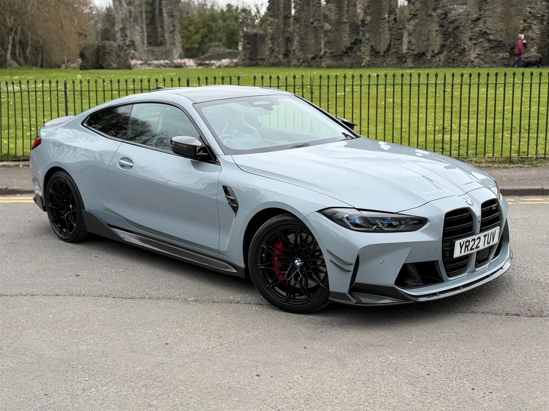 Saxon Automobiles are delighted to offer for sale this 2022 BMW M4 Competition, with just over 16,000 miles on the clock. Finished in the immaculately stunning BMW Individual Brooklyn Grey, this M4 is a true reference example with almost every optional extra fitted from the factory. It's clear that the original owner was going for a no-expense spared car with the inclusion of the full M Carbon Interior and Exterior Packages. It is only as meticulously maintained as it is specified, with full BMW service history from new. The G82 M4 Competition is arguably one of the greatest performance cars BMW has ever made. With a 0-60 of as little as 2.8 seconds and 503bhp, it's got the performance of a supercar in a sports coupe package. BMW's heritage and experience really shines through in the driving experience and sheer feeling on the road. Step inside and you're greeted by some of the best looking carbon bucket seats money can buy, wrapped in BMW Individual's Silverstone White Leather. Being such a low mileage vehicle, there are virtually no signs of wear and even includes the original blue plastic protective film fitted from factory on the sill plates and seat badges. All in all, the G82 M4 will go down in history as one of the greats, and this one could be yours. Spec Sheet and Optional Extras Carbon Fibre Interior Trim Galvanic Controls Warning Triangle Rear-view Mirror with Auto dim M Carbon Bucket Seats Front Heated Seats Driving Assistant Professional Laserlights Parking Assistant Plus BMW TeleServices Blow-by Heater Sun Protection Glass Folding Wing Mirrors with Auto dim Electric Memory Seats Extended Memory Seats Extended Storage High-Beam Assistant Active Guard Passenger airbag deactivation Automatic Air Conditioning BMW Emergency Call M Brakes with Red Calipers Ultimate Pack EU6 RDE II Exhaust Emissions 19'' / 20'' 826 M Double-spoke M Sport Differential Tyre Repair Kit EU Specific Equipment BMW Individual Lights Shadow Alarm System Comfort Access Decoding additional functions ACEA/CO2 Coding M Drive Professional Security Wheel Bolts Tyre Pressure Sensors M Adaptive Suspension M Brakes with Red Calipers Electric Bootlid M Sport Seat Belts BMW Online Services Drive Recorder Live Cockpit Pro with Head up display Wi-Fi Hotspot DAB Radio High-gloss Shadowline Exterior Control Body Refrigerant Connected Package Pro Enhanced Bluetooth with Wireless Charging Deletion of iDrive touch function Gesture Control Head-up Display Harman/Kardon Surround Sound System M Carbon Exterior Styling Anthracite Headlining Auto drive away locking, .