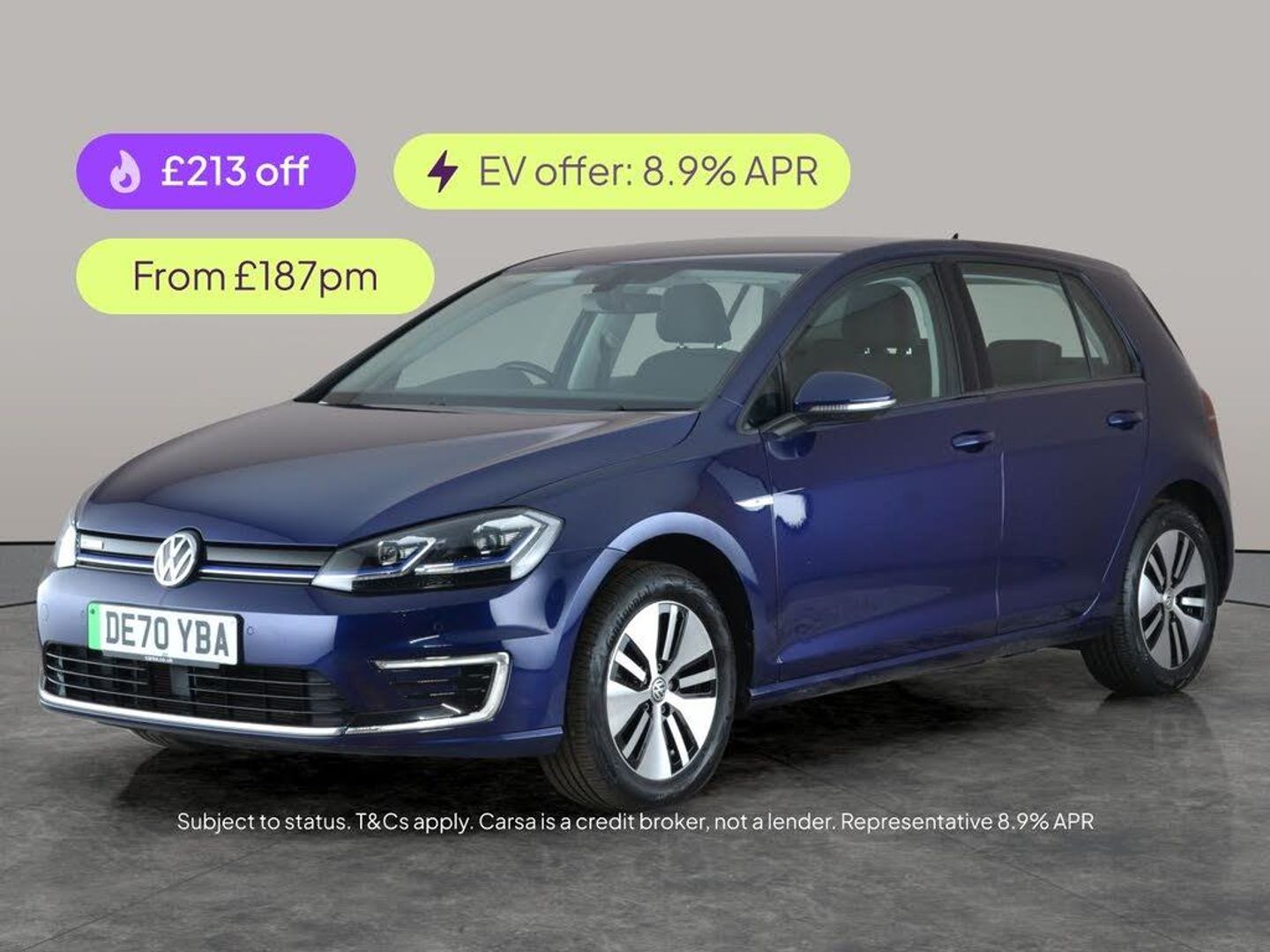 Experience effortless driving with the Volkswagen e-Golf. This stylish blue hatchback comes equipped with adaptive cruise control for stress-free journeys, advanced Bluetooth connectivity, and convenient charging leads for your electric lifestyle. Enjoy the perfect cabin climate with air conditioning and dual-zone climate control, making every trip a pleasure. Embrace the future with the e-Golf's smooth automatic driving and impressive technology. 2 services recorded, last serviced on 27/06/2024 at 17,282 miles. MOT to 13/12/2026. Visit our website for service history, online valuation, full vehicle specification plus multiple images. This vehicle is VAT qualifying. Any feature/option specified here is from 3rd party data. We cannot guarantee the accuracy of any specification supplied by a 3rd party. We recommend that you physically check the specification of the vehicle on site prior to purchase. This information does not form part of the buying contract. Terms & Conditions apply. We have over 2,000 cars available from our 10 national branches, check our website to see all our stock. Our Trustpilot rating is 4.4/5 with over 9,000 reviews.