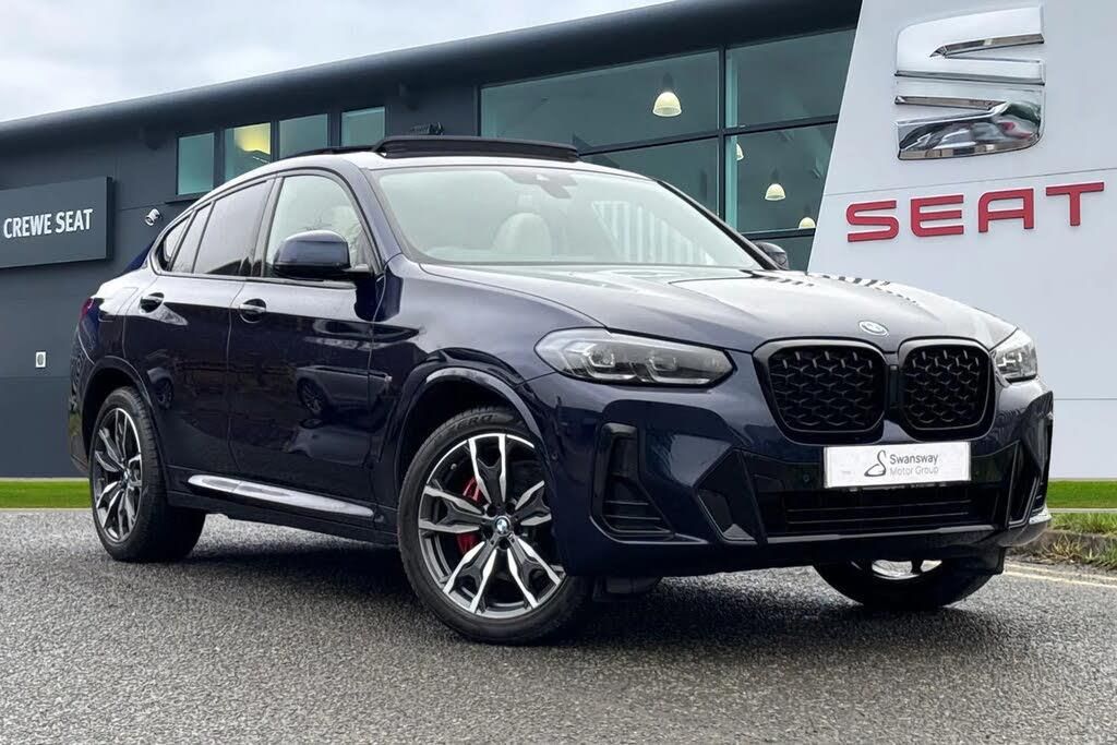 This BMW X4 2.0 20d MHT M Sport Auto xDrive Euro 6 (s/s) 5dr is finished in striking blue and combines coupe style design with everyday practicality and confident all wheel drive performance. The M Sport styling elevates its presence with M aerodynamic bodystyling, high gloss Shadowline exterior trim, side M designation badges, Glacier Silver metallic side sills and dual round split exhaust tailpipes, all sitting on impressive 19-inch 887M M Y spoke alloy wheels in Midnight Grey. Adaptive LED headlights and full LED L shaped 3D taillights enhance visibility while giving the car a sharp, modern look. Inside, the cabin delivers a premium and sporty environment with BMW Live Cockpit Professional, aluminium Rhombicle trim with Pearl Chrome accents, ambient interior lighting and an M Sport leather multifunction steering wheel. Heated front sport seats provide excellent comfort and support, while Bluetooth hands free connectivity with USB audio ensures seamless media and phone integration. Driving dynamics can be tailored via Drive Performance Control with ECO PRO, Comfort and Sport modes, supported by M Sport suspension and BMW Performance Control for a responsive yet refined drive. Technology and convenience are at the forefront, featuring front and rear parking sensors, Parking Assistant, a reversing assist camera and an automatically dimming rear view mirror. Cruise control, Comfort Go keyless start, an electro-mechanical parking brake and auto start stop deactivation add to everyday ease of use. Completing the package are the xLine exterior styling elements with underbody protection and a sunroof as part of the M Sport Pro Package, making this BMW X4 a well-equipped, stylish and capable premium SUV coupe. This vehicle is compliant with the Ultra Low Emission Zone (ULEZ) standards!
