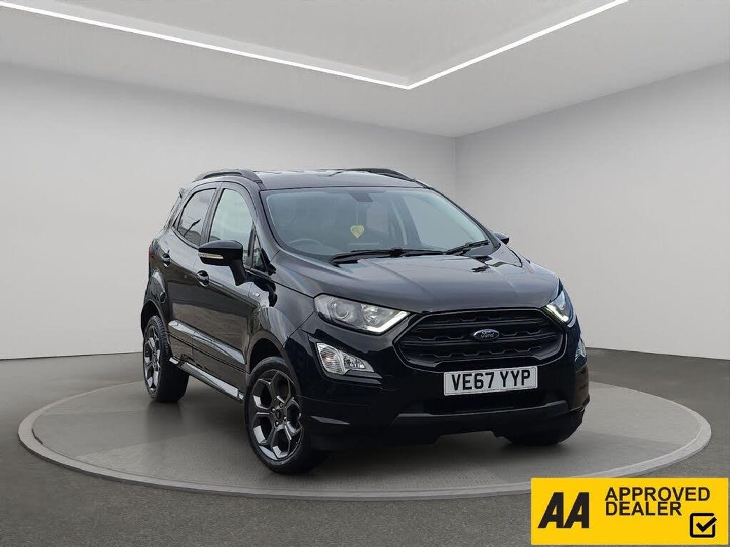 Discover this 2018 Ford EcoSport T ST-Line, a stylish and practical compact SUV. This Euro 6 compliant model boasts a responsive 1.0L petrol engine with a partial service history, offering an impressive fuel economy of up to 53 miles per gallon. It comes equipped with Ford Keyless Entry and Keyless Start for effortless access and ignition, alongside a Rear View Camera and Rear Parking Sensors to assist you with parking. Inside, you'll appreciate the Electronic Automatic Temperature Control for a comfortable cabin environment, and the Ford DAB Navigation System featuring Ford SYNC3, which includes Android Auto and Apple CarPlay for seamless smartphone integration and Bluetooth connectivity. The front seats are fitted with 2 Way Head Restraints for added comfort.This Ford EcoSport ST-Line is designed to offer a superior driving experience compared to other vehicles in its class. Its low CO2 emissions contribute to a more environmentally conscious drive. The combination of its efficient 1.0L petrol engine, advanced navigation system, and convenient parking aids makes it an excellent choice for those seeking a well equipped and economical vehicle for everyday use. It also comes with 6 months of warranty, 12 months of AA breakdown cover, finance options with hawkstone motors finance, 5 days of free AA insurance, a Fresh MOT and we also offer national delivery with extra costs and we service all our cars.-PARTIAL SERVICE HISTORY