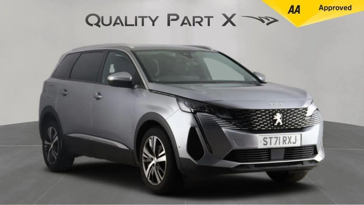 12V Sockets x3 - Dashboard - Rear Cabin and Load Area, 180 Degree Colour Reversing Camera with Wash System, 18in Alloy Wheels - Detroit - Storm Grey - Diamond Cut, 3D Connected Navigation, 6-Speaker Radio - MP3 Compatible, ABS - Anti-Lock Braking System with REF - Electronic Braking Distribution and AFU - Emergency Braking Assistance, Advanced Emergency Braking System, Airbags - Adaptive Driver and Front Passenger, Airbags - Driver and Front Passenger Side, Airbags - Front and Rear Curtain, Alarm, Aluminium Longitudinal Roof Bars, Automatic Door Locking When Moving Off, Automatic Hazard Light Activation Upon Heavy Brake Application, Automatic and Dual-Zone Diffusion Air-Conditioning System, Bi-Tuner Radio including DAB - Digital Radio, Blue Ambient Lighting for Central Connecting Zone, Blue Ambient Lighting to Front Door Panels and Cupholders, Bluetooth Telephone Facility, Body Protectors in Black, Brumeo Fabric Trimmed Door Armrests, Central Front Armrest with Butterfly-Wing Opening and Illuminated Storage Compartment, Childrens Pack, Chrome Grille, Chrome Rear Bumper Scuff Plate, DSC - Dynamic Stability Control and ASR - Electronic Anti-Skid System, Dark Tinted Rear Side and Tailgate Windows, Dashboard Trim - Satin Chrome, Digital Instrument Panel Trim - Satin Chrome, Door Mirror Shells - Body-Colour, Door Mirrors with Blind Spot Detection Indicator and Auto Dipping Function in Reverse Gear, Driver Attention Alert System 1 - DAA1, Driver and Front Passenger Seat Mechanical Height Adjustment, Eco LED Headlights, Electric Child Locking Functionality on Rear Windows and Doors, Electric Parking Brake includes Hill Assist, Electric Power Steering with Reach and Rake Adjustable Steering Column, Electronic Code Immobiliser, Extended Traffic Sign Recognition, Exterior Door Handles - Body-Colour, Exterior Temperature Indicator with Ice Warning, Flocked Glove Box Interior, Footwell Lighting, Front Ambient Lighting, Front Central Console with Two Cup-Holders, Front Door Panel Recess Trim - Satin Chrome, Front Interior Light with Reading Spotlights x2 - Row 2 Interior Light with Reading Spotlights x2 - Row 3 Reading Spotlights x2 with Timer, Front Optimised Safety Headrests and Rear Retractable Headrests - x3 - Height-Adjustable, Front Three-Point Retractable Seatbelts - Height-Adjustable with Pre-Tensioners and Force Limiters, Front Windscreen Wiper with Magic Wash Cleaning System, Front Wing Trim - Chrome, Front and Rear Door and Sill Protectors with Polished Stainless Steel Insert, Gear Shift Indicator, Gloss Black B and C Pillar and Aerodynamic Deflector Trim, Gloss Black Front Bumper Air Scoops, Gloss Black Rear Cluster Connecting Strip, Grab Handles x4 - Retractable - Damped, Hands Free Start System - Keyless Start, Headlights Left On Audible Warning, Heated Rear Windscreen with Integrated Antenna, Horn - Two Tone, ISOFIX Child Seat Fittings - x3 - Second Row Rear Seats, Illuminated Glove Box, Illuminated Vanity Mirrors, Interior Door Handles - Satin Chrome, LED Daytime Running Lights - Saber Style with Integrated LED Indicators, LED Interior Lighting, LED Rear Lights including Reversing Lights - Scrolling Indicators and PEUGEOT 3 Claw Effect Light Signature with Daylight Function, LED Rear Number Plate Lighting, LED Side Indicator Lights Integrated into Door Mirrors, Lane Departure Warning System, Map Pockets on Front Seat Backs, Mirror Screen - Apple CarPlay and Android Auto, Multifunction Trip Computer, One-Touch Electric Front and Rear Windows with Pinch Protection, PEUGEOT Open and Go System, Parking Sensors - Front, Peugeot Connect SOS and Assistance, Peugeot i-Cockpit, Power Folding Door Mirrors - Includes LED Courtesy Approach Lights, Programmable Cruise Control and Speed Limiter with Intelligent Speed Adaption, Puncture Repair Kit including Compressor - Sealant Cartridge and Towing Eye, Rear Coat Hooks x2, Rear Parking Aid, Rear Spoiler - Body Colour, Rear Three-Point Retractable Seatbelts x3 - with Pre-Tensioners and For
