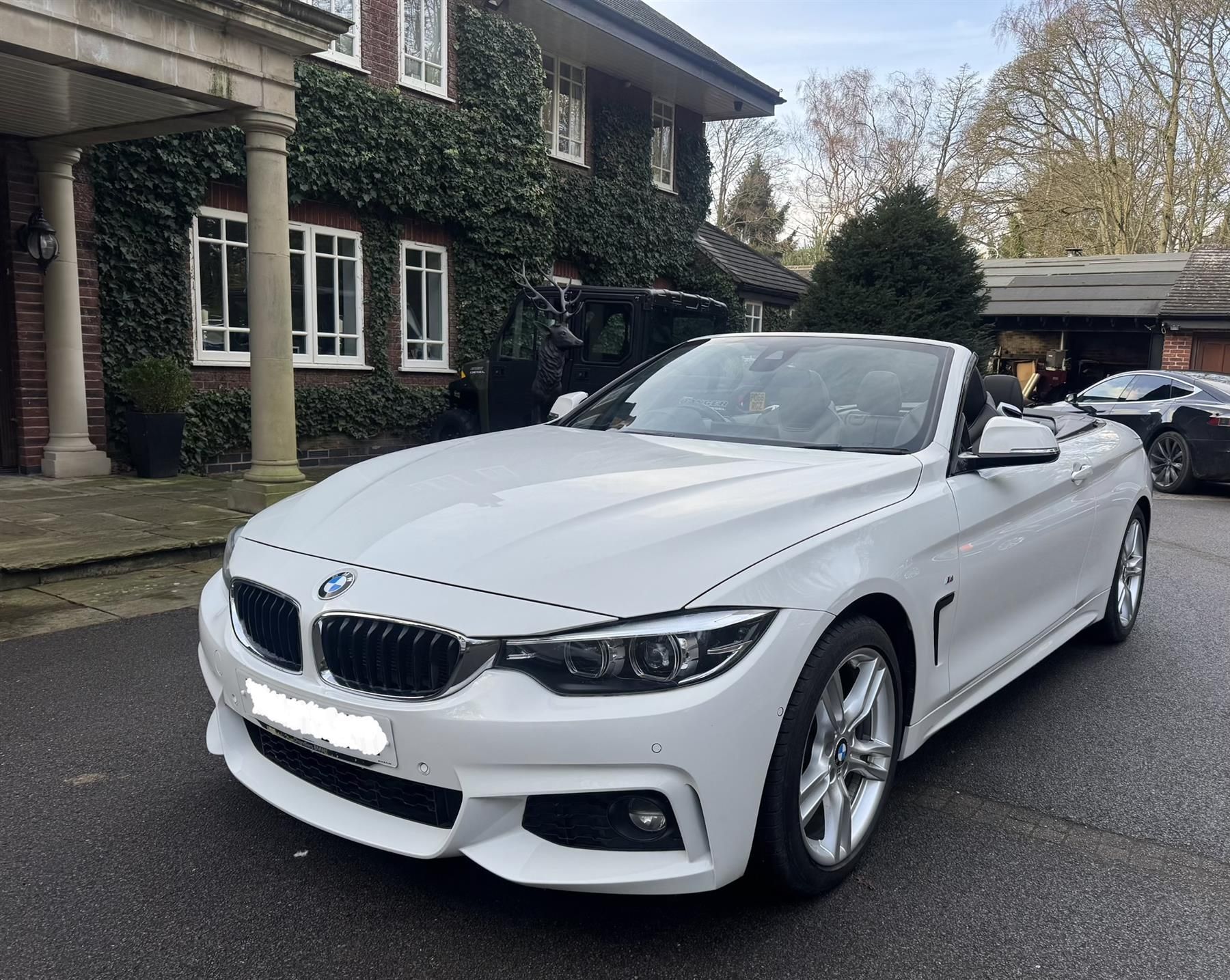 Hi welcome to our stunning BMW 420d m-sport convertible in alpine white with black leather interior. Wheels are unmarked and tyres have thousands of miles left. Interior is stunning with no seat bolster wear.