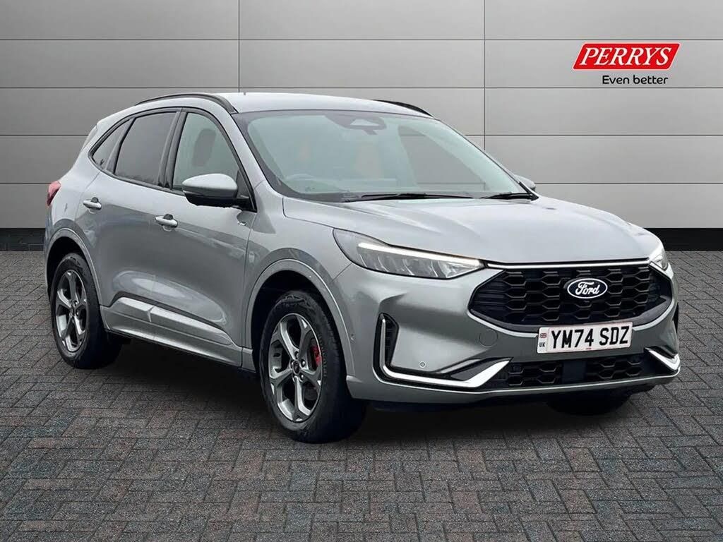 12.3" digital colour instrument cluster,360 degree view camera,Clear exit assist,Cross traffic alert with active braking,e-Call (emergency call),Ford easy fuel,Ford SYNC 4 Navigation with 13" touchscreen, DAB radio, emergency assistance, Andriod Auto/Apple CarPlay, 5G modem & Ford Pass connect,Front and rear parking sensors,Hands free power tailgate,Lane centering assist,Lane keeping aid with lane departure warning,Power assist steering,Selectable drive modes,Service interval indicator,Sports suspension,B&O premium audio system with 10 speakers, subwoofer and 2 USB ports,Auto headlamps with high and low beam,Black roof rails,Body colour bumpers,Front LED fog lamps,Large rear spoiler,LED daytime running lights,LED rear lights,LED third brake light,Pop out door edge protectors,Power front/rear windows with global close,Power heated folding door mirrors with puddle lights, memory function and camera,Quickclear heated windscreen,Rain sensing wipers,Rear privacy glass,Rear side wing doors,Rear wiper,ST-Line body styling kit,2nd row sliding seats,Electronic automatic temperature control (EATC),Front and rear head restraints,Partial premium touch sensico upholstery,Rear centre head restraint,Single front passenger seat,Sports seats,Driver assistance pack - Kuga Auto,3x3 point rear seatbelts,Airbags - front driver/passenger, front and rear curtain,Drivers knee airbag,Dynamic brake support,Electronic stability control (ESC) and ABS,Evasive steering assist,Ford MyKey Gen 2 safety system,Manual child proof rear door locks,Pre collision assist with autonomous emergency braking,Rear seat Occupancy alert,Red brake calipers,Tyre pressure monitoring system,Engine immobiliser,Keyless entry and Ford power start button (Keyless start),Locking wheel nuts,Remote powered central double locking doors,Thatcham category 1 alarm,Solar Silver