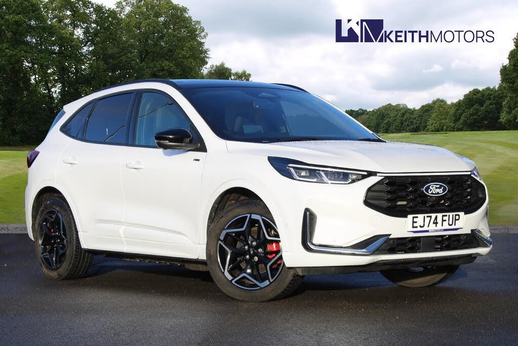 12.3" digital colour instrument cluster, 360 degree view camera, e-Call (emergency call), Ford easy fuel, Ford SYNC 4 Navigation with 13" touchscreen, DAB radio, emergency assistance, Andriod Auto/Apple CarPlay, 5G modem & Ford Pass connect, Front and rear parking sensors, Hands free power tailgate, Lane centering assist, Lane keeping aid with lane departure warning, Power assist steering, Selectable drive modes, Service interval indicator, 3-Pin Home charge cable (230V/16A Domestic socket), Sports suspension, Twist beam rear suspension, B&O premium audio system with 10 speakers, subwoofer and 2 USB ports, Auto headlamps with high and low beam, Black roof rails, Body colour bumpers, Front LED fog lamps, Large rear spoiler, LED daytime running lights, LED rear lights, Pop out door edge protectors, Power front/rear windows with global close, Power heated folding door mirrors with puddle lights, memory function and camera, Power opening panoramic roof, Quickclear heated windscreen, Rain sensing wipers, Rear privacy glass, Rear side wing doors, Rear wiper, ST-Line body styling kit, Third brake light, 12 way ergonomic power adjust driver's seat with memory (AGR certified), 12 way ergonomic power adjust passenger seat (AGR certified), 2nd row sliding seats, Electronic automatic temperature control (EATC), Front and rear head restraints, Partial premium touch sensico upholstery, Rear centre head restraint, Single front passenger seat, Sports seats, Driver assistance pack with intelligent adaptive cruise control - Kuga FHEV/PHEV, Winter pack - Kuga, 3x3 point rear seatbelts, Airbags - front driver/passenger, front and rear curtain, Drivers knee airbag, Dynamic brake support, Electronic stability control (ESC) and ABS, Evasive steering assist, Ford MyKey Gen 2 safety system, Manual child proof rear door locks, Pre collision assist with autonomous emergency braking, Rear seat Occupancy alert, Red brake calipers, Tyre pressure monitoring system, Engine immobiliser, Keyless entry and Ford power start button (Keyless start), Locking wheel nuts, Remote powered central double locking doors, Thatcham category 1 alarm