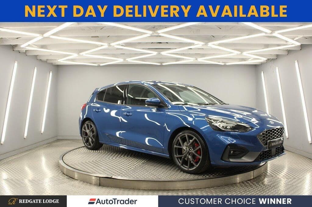This is our fantastic 2020 Focus ST. This is a lovely low mileage example having covered only 27,000 miles and comes with a brilliant service history too and also has the desirable performance pack, it doesn't get much better than this.Finished in performance blue, finished off with matte anthracite 19'' wheels. Not only does this ST look great it offers superb Performance being the most powerful ST to date with 277 BHP 0-60 in 5.7 seconds and goes on to a limited 155 mph, yet still can average mpg of 34 mpg up to 45 mpg on a motorway journey. Which is brilliant for a car that looks and goes like this. To the inside we see the Recaro ST interior trimmed in black partial leather/grey alcantara with power adjustment and heated front seats along with the heated steering wheel, the Recaro seats are comfortable yet very supportive and offers full 3 seats in the rear. There are LED highlights and illumination around the interior not to mention head up display, Satellite navigation, DAB radio, Bluetooth and parking sensors.We purchased this ST from Grant who lives in Falkirk, They had the pleasure of owning it for over 2 years, Grant contacted us via our Bye Buy Motors section of our website for valuation, we agreed on a fair price and arranged collection from his home. This ST comes with a lovely service history too with 5 services in the record, with servicing carried out at 4876, 11,352, 17,450, 21,962, 26,810 and 27,181, This car is now fully prepared and can be driven away today, the preparation process included a new 12 months MOT with no advisories, a vehicle service and a 200 point health check. Included in the preparation we also fitted new front brake discs and pads, along with 2 tyres. We have also had the car through our bodyshop for inspection and quality checks, and have had the wheels fully refurbished returning them to as new condition.BE QUICK! MISS IT MISS OUT. You can reserve this car on our website with a £250 fully refundable deposit. We prepare our cars to the highest of standard, in fact, we are so confident in our Preparation and Service Support fee (£199 on all vehicles), that if you can find a like for like car at another garage with the same level of preparation and service support, we will price match their vehicle and give you £500 money back!Click the Preparation and Service Support link next to all of our cars (you will find this next to the cars price) here you will find just how good our preparation and aftercare really is. We have an on-site Bosch Car Service Centre, fully equipped Bodyshop including Alloy Wheel Refurbishment and an Auto Glym Car Spa. We only use top quality parts and materials when preparing our cars. All of the car's preparation is documented so you can see the length we have taken to ensure your new car has been prepared to the highest and safest standard. PLEASE BE AWARE NOT ALL CARS ARE KEPT ON SITE, SO PLEASE CALL AHEAD TO ARRANGE AN APPOINTMENT-6 SERVICES, ST PERFORMANCE PK