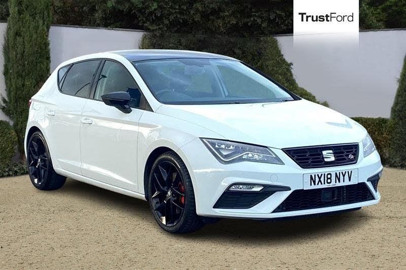 'Lights On' Reminder warning buzzer, 8 touch screen, Bluetooth Handsfree Phone Connection, Low fuel warning light, Outside temperature gauge, Rear parking sensors, Remote fuel flap release, SEAT Drive profile, SEAT logo boot release, Service interval indicator, Trip computer, Voice control system, Aluminium front door sills, Black grille with chrome surround, Body colour door handles, Body coloured bumpers, Body coloured door mirrors, Dark tinted rear windows, Electric adjustable/heated/folding door mirrors, Electric front/rear windows with one touch/auto up/down, Electric headlamp adjustment, High gloss black finish B and C pillars, LED daytime running lights, LED front fog lights, LED Headlights, LED indicators in door mirrors, LED number plate light, LED tail lights, Rear wash/wipe, Reverse activated kerb-view adjustment on passenger's door mirror, Twin exhaust pipes, 12v power point in centre console, 3 height adjustable rear headrests, 60/40 split folding rear seat, Active head restraints, Additional heating and ventilation outlet in rear of centre console, Boot net, Driver seat height adjust, Driver seat lumbar adjustment, Driver/passenger sunvisors with illuminated vanity mirrors, Dual zone climate control, Dust/pollen filter, Front adjustable head restraints, Front armrest with storage box, Front cupholders x 2, Front seat and rear pockets, Front sports seats, Front/rear floor mats, Height/reach adjust steering wheel, Illuminated boot, Illuminated door sills, Illuminated glovebox, Illuminated rear centre console, Instrument lighting with brightness control, Leather handbrake, Luggage tie-down hooks, Passenger seat height adjuster, Passenger seat lumbar adjust, Perforated leather steering wheel with red stitching + gear knob, Rear top tether child seat ISOFIX attachment, Steering wheel gearshift paddles, Storage boxes under front seats, 3 point seatbelts on all rear seats, ABS + traction control, Active pedestrian safety system, Child proof door locks, Collision mitigation braking system, Curtain airbags, Driver/Front Passenger airbags, Drivers knee airbag, Electronic parking brake with auto hold, ESP+EBA, Front assist including city emergency braking, Front seatbelt pretensioners, Front Seatbelt warning, Front side airbags, Hill hold control, Manual passenger airbag deactivation function, Tyre pressure monitoring system