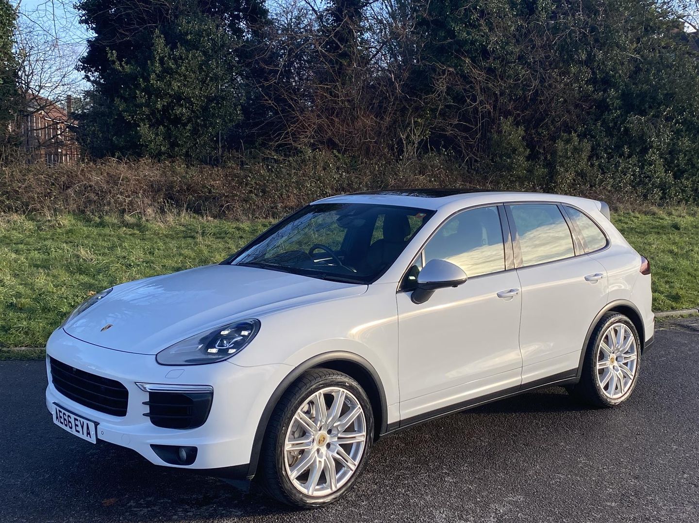 Over £35k of extras. White Metallic, extras include Sport Chrono package, 4 point matrix headlamps, 2017 model year navigation/infotainment display with online/remote services capability incl tracking and security services, air suspension, retractable (glass) panorama roof, auxiliary heater programmable and with remote to preheat interior on cold says, electric retractable trailer hitch, 21 inch alloys and a second 20 inch set (gloss black) on winter tyres, gloss black sport exhaust tips, window tint delete, comfort sport seats fully electric and air-conditioned/ventilated (front) and heated (front and rear), extended leather package with custom white stitching (seats, dash, and door panels), carbon package, alcantara headliner, electric rear side window blinds, Bose surround, 100l capacity diesel tank for 900km+ range, partial PPF since new, comes with Porsche Tequipment hitch mounted bike rack (for 2 bikes).