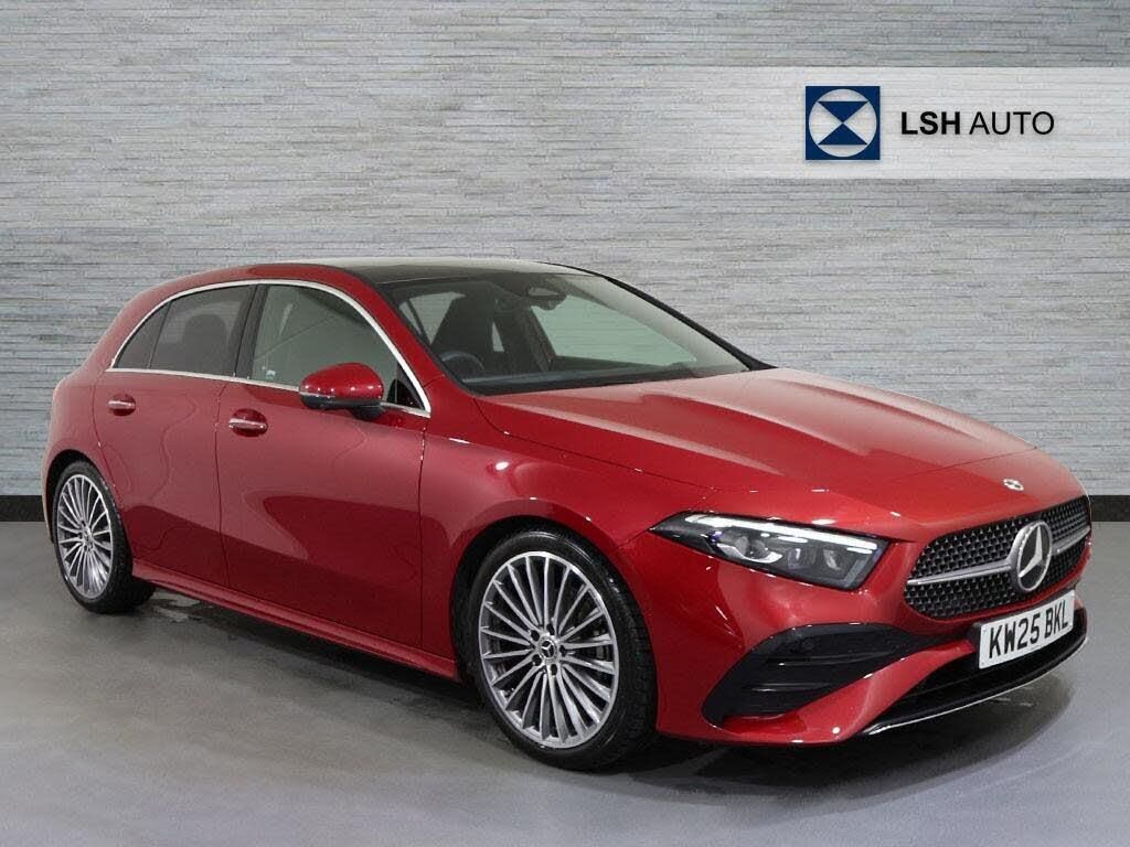 This exceptional Mercedes Benz A Class A200h AMG Line (Premium Plus) is presented as a manufacturer approved, one owner vehicle with a full dealership service history and a mere 5181 miles on the clock. Registered in 2025, this Euro 6 compliant 1.3 litre petrol hybrid boasts a 24 month warranty and an MOT valid until June 2028, offering peace of mind for its next owner. Notable features include convenient wireless charging, dual Bluetooth interfaces for seamless connectivity, and the effortless Keyless Go system for easy entry and ignition.Experience impressive performance with an acceleration of 0 to 62 miles per hour in just 8.2 seconds, a figure that sets this A Class apart from many others. This vehicle also offers a generous boot space, making it a practical choice for everyday use and longer journeys. The combination of its low mileage for its age, comprehensive provenance, and desirable features makes this Mercedes Benz A Class a truly outstanding proposition.-SUNROOF PREMIUM PLUS AMG LINE-Mercedes-Benz A Class A200 AMG Line Premium Plus 5dr Auto-LSH Auto UK Ltd - An LSH Group Company. The Worlds Largest Retailer of Mercedes-Benz Passenger Cars