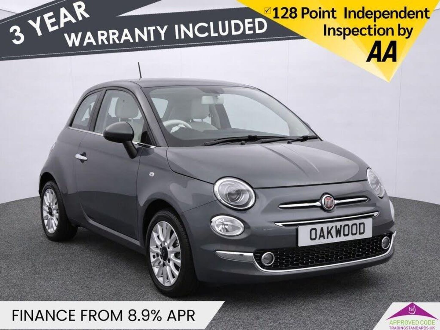This 2018 Fiat 500 Lounge boasts exceptionally low mileage for its age, having covered just 39,000 miles. This stylish city car is powered by an efficient 1.2L Euro 6 petrol engine, ensuring it meets modern emission standards. The Lounge trim level comes well equipped, featuring front seats with memory function for personalised comfort, and air conditioning to keep you cool. Entertainment and connectivity are handled by a 5in touchscreen radio with AUX, USB, DAB, and Bluetooth capabilities, while rear parking sensors provide added convenience when manoeuvring. A fixed glass roof with a sunblind floods the cabin with light, enhancing the sense of space. The low insurance group and low CO2 emissions of this Fiat 500 are significant advantages, indicating that it is more economical to own and run compared to many other vehicles in its class. With its long MOT, this well maintained 2018 Fiat 500 Lounge offers a compelling package for anyone seeking a chic and practical car. Oakwood Motor Company are an established family run dealership, home of the best used cars in Bury! We have hundreds of cars currently in stock from all your favourite brands including our specialist selection of Audi VW Group vehicles. Our fantastic rates are available on both HP and PCP finance, and we have extended warranties available for up to 3 years for complete peace of mind. Our experienced sales team are on hand to help you every step of the way, so give us a call today to reserve your new car with a refundable £100 deposit. Visit our used car dealership in Bury! We take all reasonable steps to ensure the accuracy of the information supplied in our advertising materials, however on occasion errors may occur. Images used are for illustrative purposes only. Please ensure you take the time to fully inspect your vehicle for specification/features which are important to you, and raise any queries with your Sales Executive.