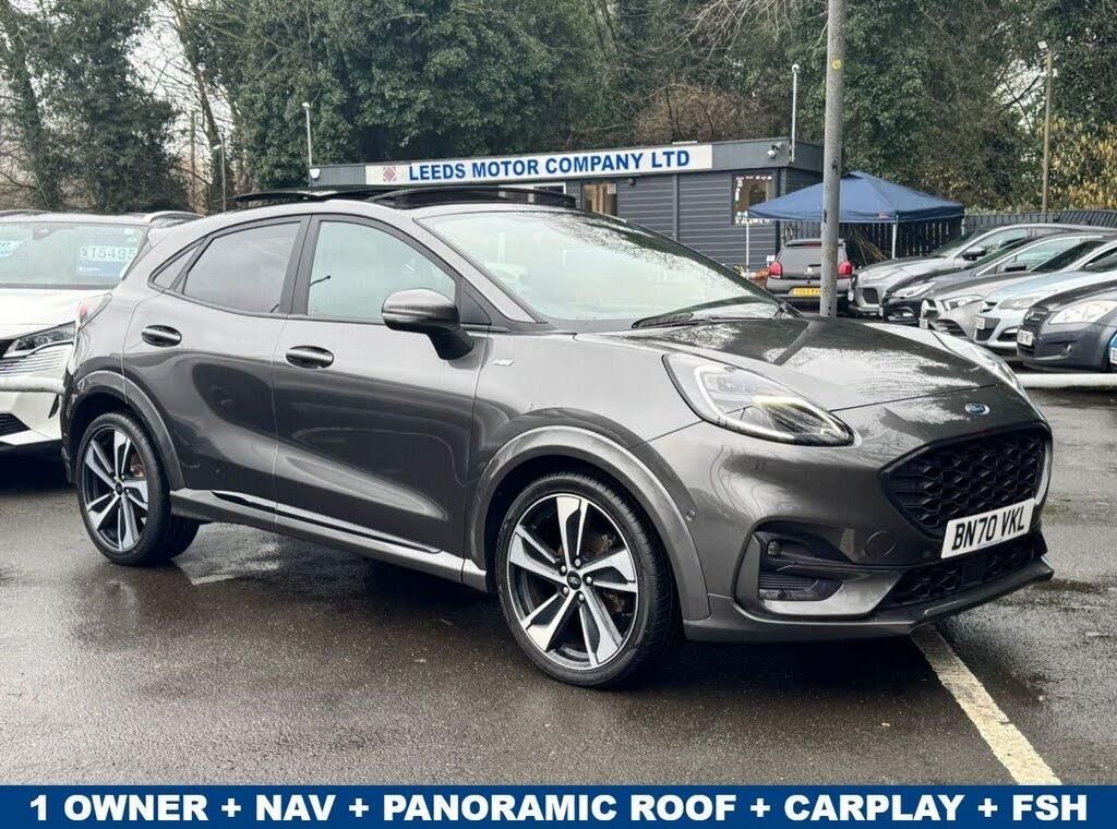 This 2020 Ford Puma ST-Line X First Edition Plus is a standout example, boasting a single owner and a full service history, ensuring excellent provenance. With only 30,000 miles on the clock, this 1.0L petrol Euro 6 compliant model offers a compelling blend of style and substance. Its ST-Line X First Edition Plus Pack enhances the driving experience with adaptive cruise control, LED headlights, keyless entry, and an opening panoramic sunroof. Further convenience is provided by front and rear parking sensors, a rear parking camera, and wireless phone charging. Inside, you'll find the B&O Premium Audio System and Ford SYNC 3 Navigation, complete with Android Auto and Apple CarPlay connectivity for seamless integration of your digital life. This particular Ford Puma offers impressive performance and efficiency, making it a superior choice for discerning drivers. Its acceleration from 0-60mph in just 8.9 seconds demonstrates its responsive nature, while the highlight fuel economy of 50 mpg and low CO2 emissions mean you can enjoy your journeys with greater peace of mind and lower running costs. The inclusion of the Driver Assistance Pack, featuring Blind Spot Assistance, further elevates its safety credentials, indicating a higher level of specification compared to many other vehicles in its class. With an MOT valid until September 2026, this well maintained and feature rich Puma is ready for its next adventure. FAMILY RUN BUSINESS FOR OVER 30 YEARS -- OVER 150 CARS ACROSS 3 SITES 1/2 MILE APART -- £2000 TO £20,000 STOCK -- ALL OUR CARS COME PDI SERVICED AND MECHANICALLY INSPECTED BY OUR WORKSHOP -- FREE WARRANTY AND 1 YEAR AA BREAKDOWN COVER -- HOME DELIVERY -- ALL CARS HPI CLEAR -- COMPETITIVE PRICE FOR ANY PART EXCHANGE -- LOW RATE FINANCE AVAILABLE -- £99 ADMIN FEE -- RESERVE YOUR CAR TODAY -- VISIT LEEDSMOTORCOMPANY.CO.UK