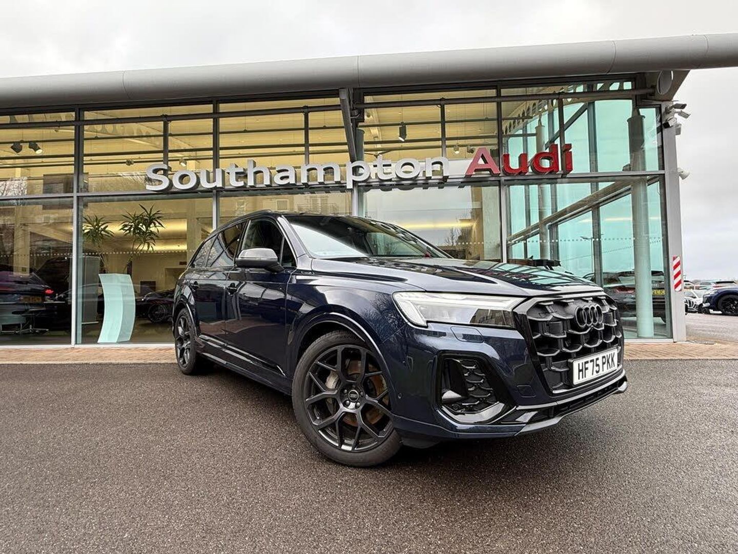 ONE OWNER FROM NEW, EX HARWOODS MANAGEMENT CAR, TECHNOLOGY PACK, HEADS-UP DISPLAY, PARKING ASSIST PACK, 360-DEGREE CAMERA, ADAPTIVE AIR SUSPENSION, 7-SEATS, BLACK APPEARANCE PACK PLUS, CRUISE CONTROL, SPEED LIMITER, DIGITAL INSTRUMENT CLUSTER, SATELLITE NAVIGATION, POWER OPERATED TAILGATE, DUAL ZONE CLIMATE CONTROL, LED HEADLIGHTS, BANG & OLUFSEN PREMIUM SOUND SYSTEM, DAB / FM RADIO, APPLE CARPLAY, ANDROID AUTO, BLUETOOTH CONNECTIVITY, VOICE CONTROL, USB PORTS, WIRELESS PHONE CHARGER, INFOTAINMENT TOUCHSCREEN, LEATHER FLAT BOTTOM MULTI-FUNCTION STEERING WHEEL WITH GEAR SHIFT PADDLES, FINISHED IN WAITOMO BLUE METALLIC, BLACK VALCONA LEATHER WITH S EMBOSSED UPHOLSTERY, ELECTRICALLY ADJUSTABLE FRONT SEATS, DRIVER SEAT MEMORY FUNCTION, HEATED FRONT SEATS, GREY POLISHED OAK INTERIOR INLAYS, MULTI-COLOURED EXTENDED LED INTERIOR LIGHTING, BLACK ROOF RAILS, REAR PRIVACY GLASS, 21 BLACK 6-Y SPOKE ALLOY WHEELS, ELECTRICALLY ADJUSTABLE HEATED AND FOLDING EXTERIOR MIRRORS WITH BLACK CAPS, AUTOMATIC LIGHTS, RAIN SENSING WIPERS, ELECTRONIC HANDBRAKE WITH AUTO HOLD, PUSH BUTTON START, AUDI DRIVE SELECT, TIPTRONIC AUTOMATIC GEARBOX, QUATTRO 4-WHEEL DRIVE, 2 KEYS, EURO 6, ULEZ COMPLIANT. This car comes with the balance of the manufacturers warranty and roadside assistance until 1/09/2028. Crawley Audi are delighted to offer our Audi Q7 3.0 TDI 50 Black Edition in Blue over Black Leather and has completed 8,656 miles. We are proud to be part of the Harwoods group, a family run business established in 1931. With four approved Audi retailers within our group, we have access to over 400 vehicles. If this isn't the right car for you our Group stock has spec to include Sunroof, Apple Car Play, Heated Steering Wheel, Reverse Camera, Rear Entertainment, Towbar, Comfort & Sound Pack, Panoramic Sun Roof, Tow Bar, Black Pack, Adaptive Cruise, Massage Seats, Refrigerator, AWD, Vorsprung, Technik, S-Line, S Line, Edition 1, TFSI, Sportback, LWB. Other colour options including Black, Green, Silver, White, Red, Grey, Yellow, Orange, Interior options of Ebony, Ivory, White, Tan-TECHNOLOGY PACK, HEADS-UP